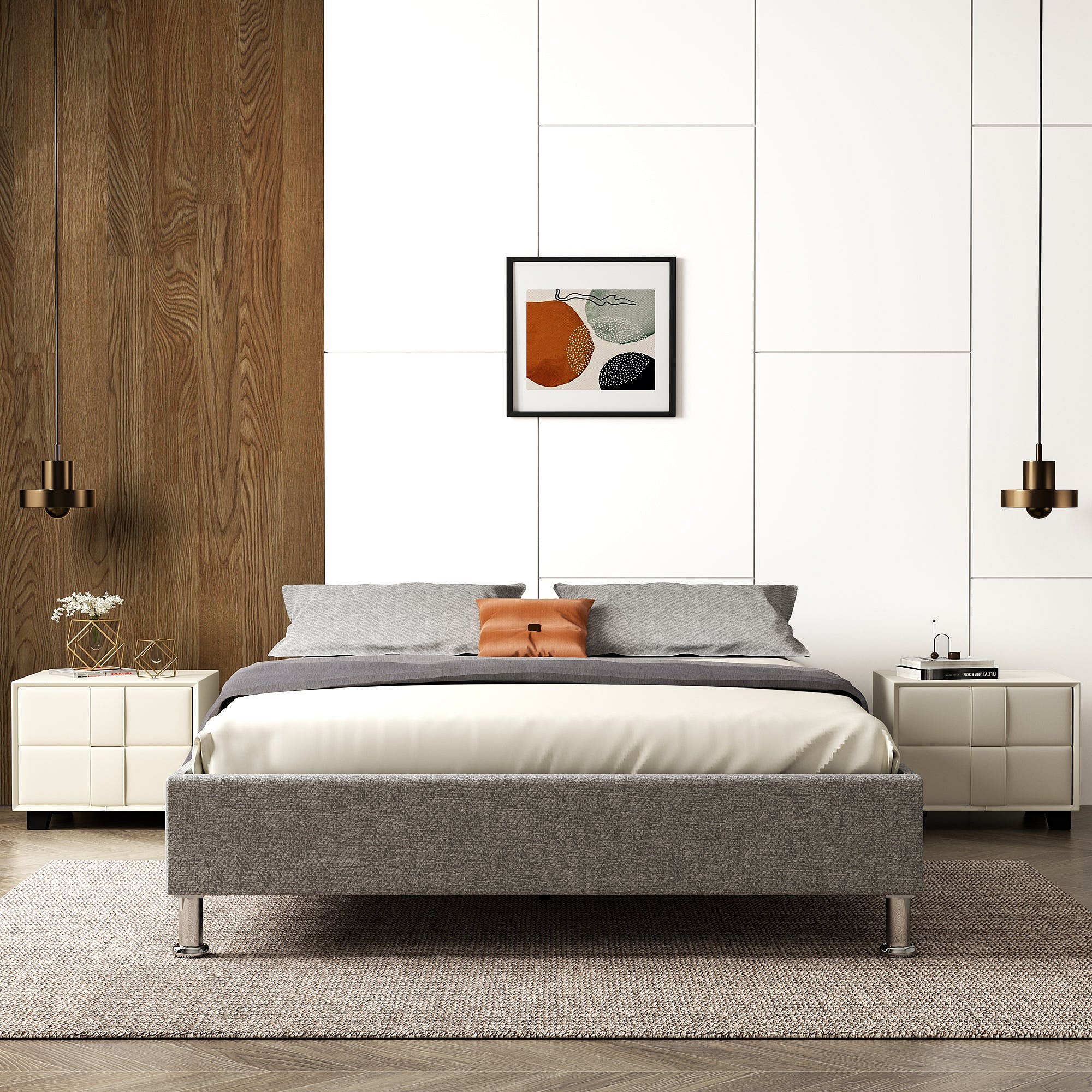 Cadre de lit gris, 140x190 cm, rembourré 31 cm