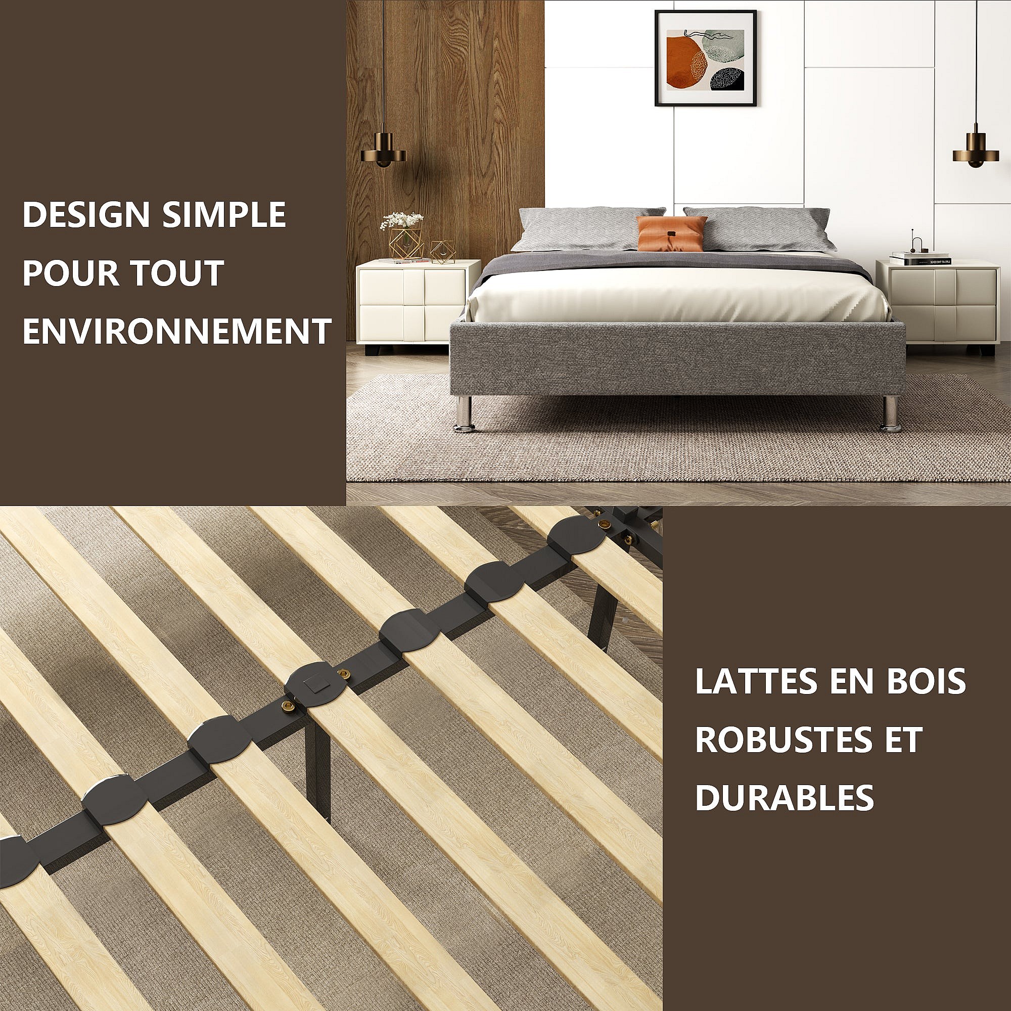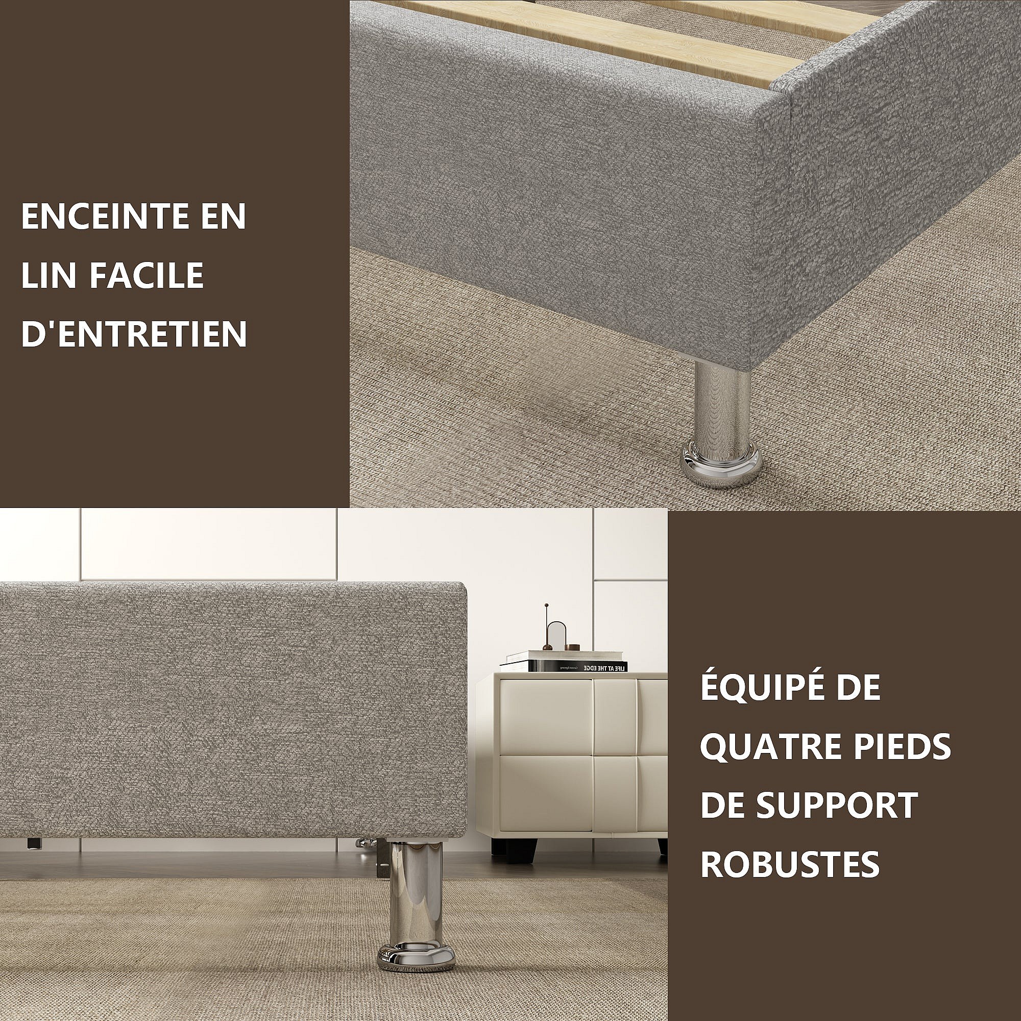 Cadre de lit 140x190cm, Plateforme capitonné 31 cm Sommier,Gris foncé