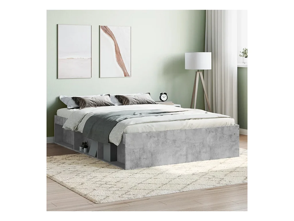 Cadre de lit gris béton 135x190 double