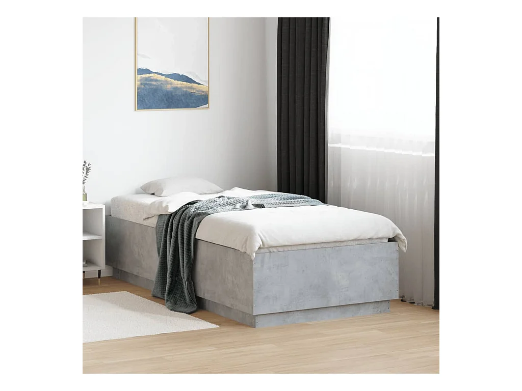 Cadre de lit gris béton 75x190 bois d'ingénierie