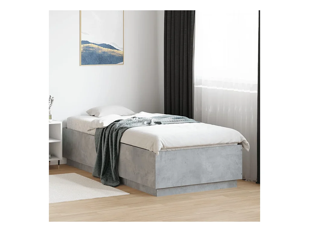 Cadre de lit gris béton 90x200 bois d'ingénierie