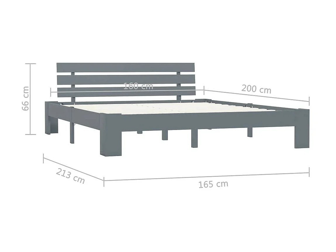 Lit Gris Bois de pin massif 160x200