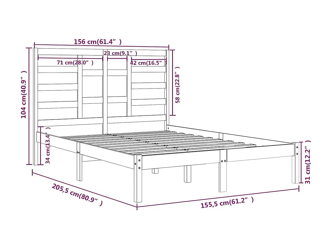 Cadre de lit Gris Bois massif 150x200 cm Très grand