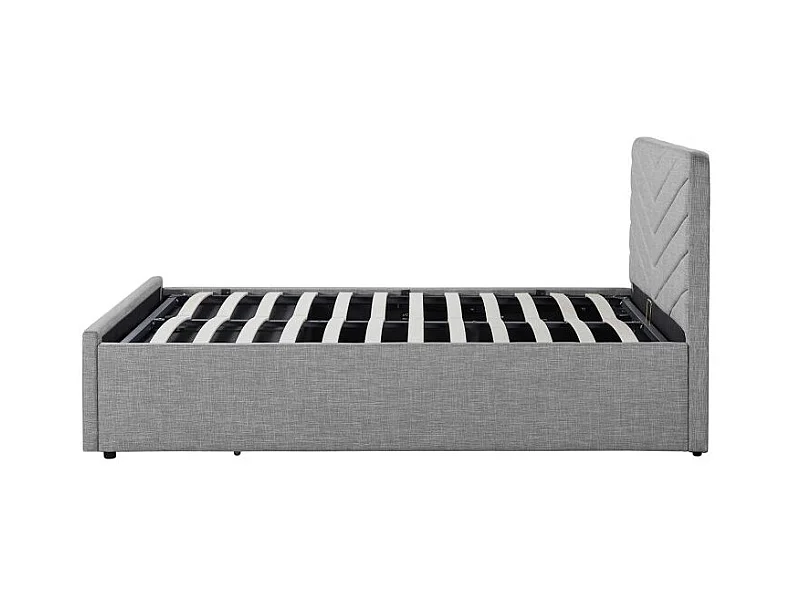 Cadre de lit HECTOR avec tête de lit et sommier à lattes en tissu - Gris - 140 x 190 cm