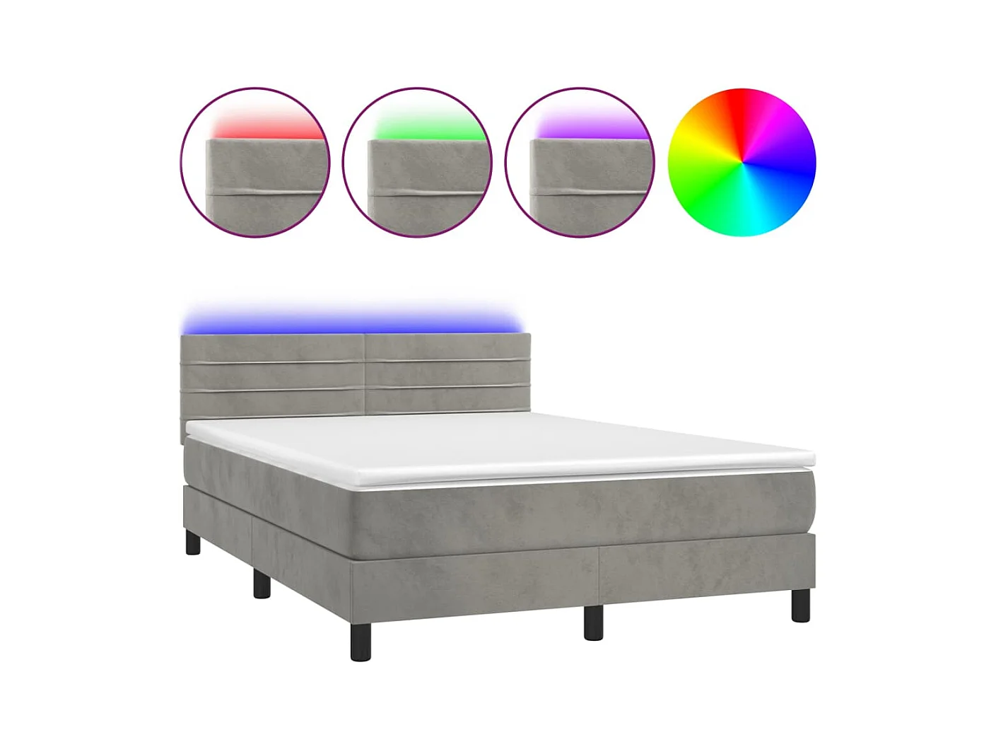 Cadre de lit LED tissu grise 203 x 144 x 88 cm TDL0207841