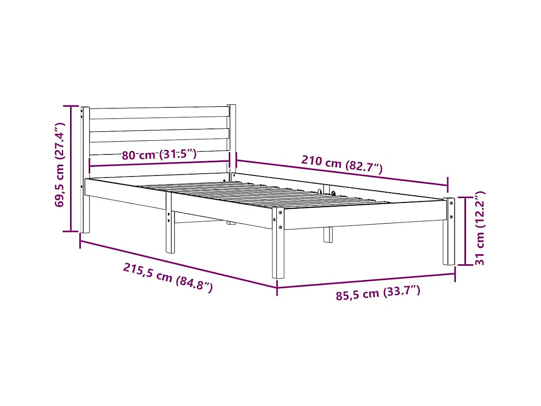 Cadre de lit Marron 210 x 80 cm Bois massif en pin