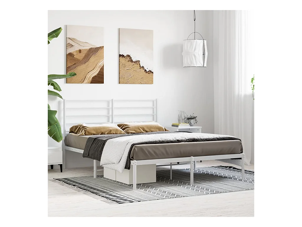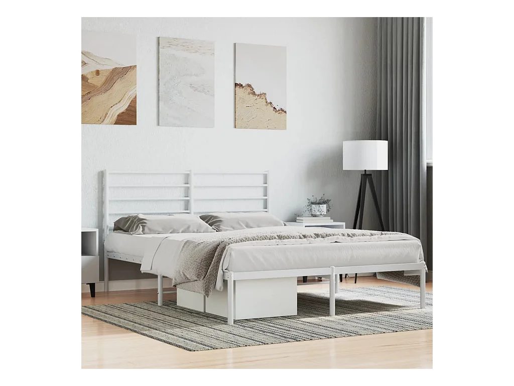 Cadre de lit métal avec tête de lit blanc 160x200