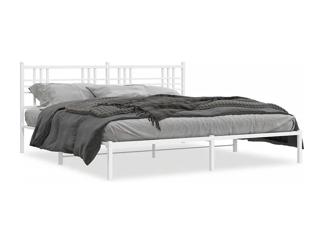Cadre de lit métal avec tête de lit blanc 180x200