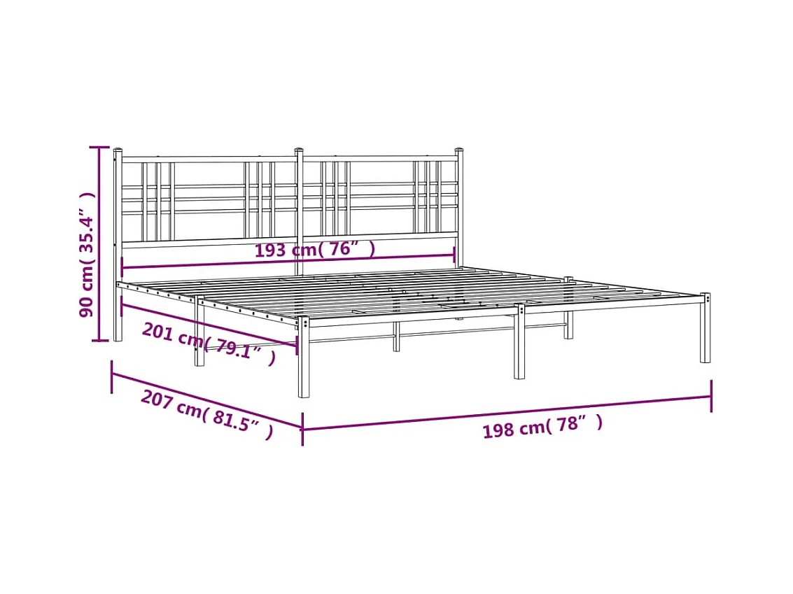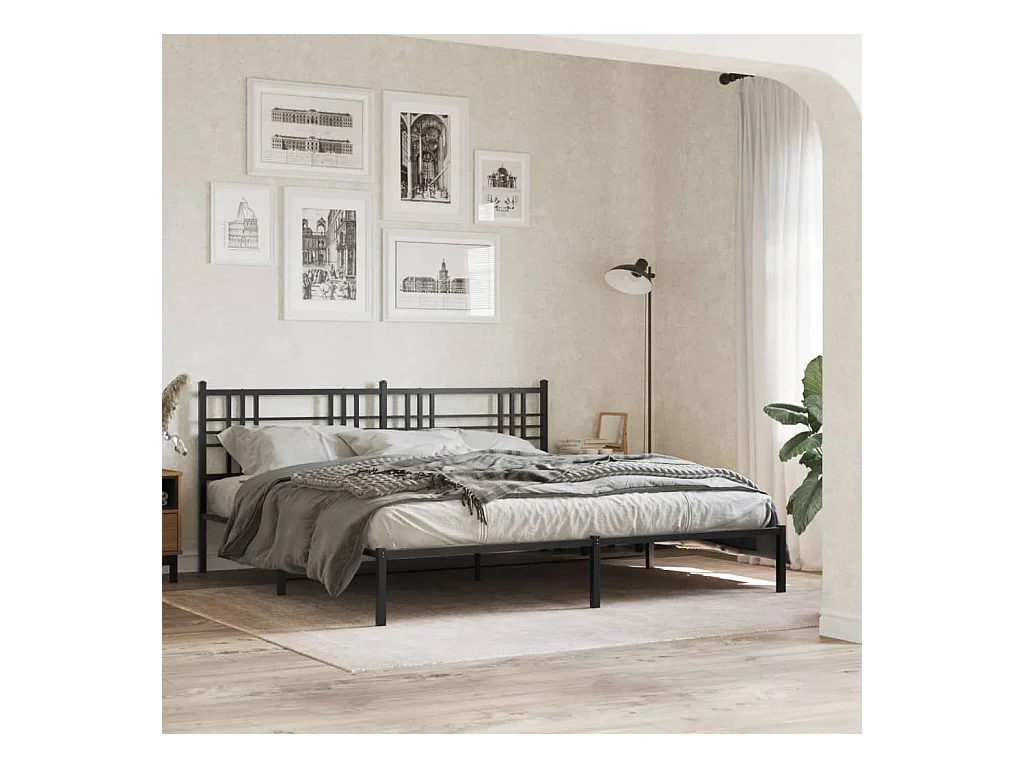 Cadre de lit métal avec tête de lit noir 193x203