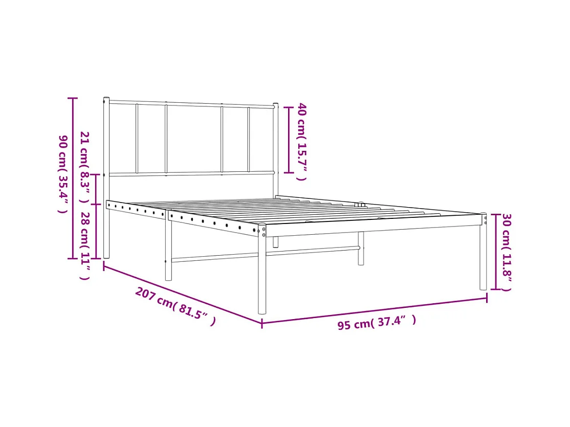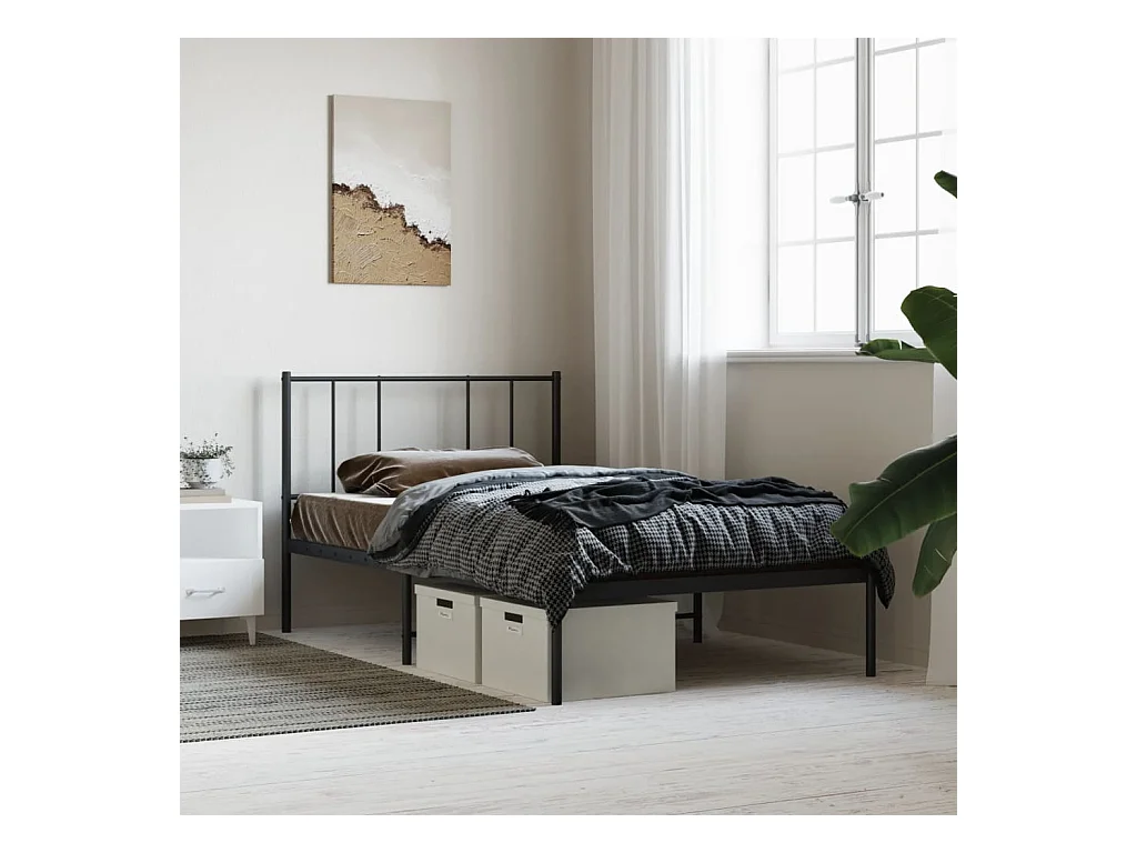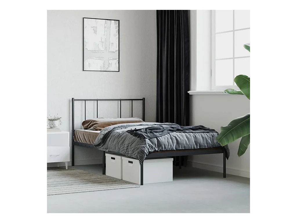 Lit simple métal + tête de lit noir 90x200 cm FR58608