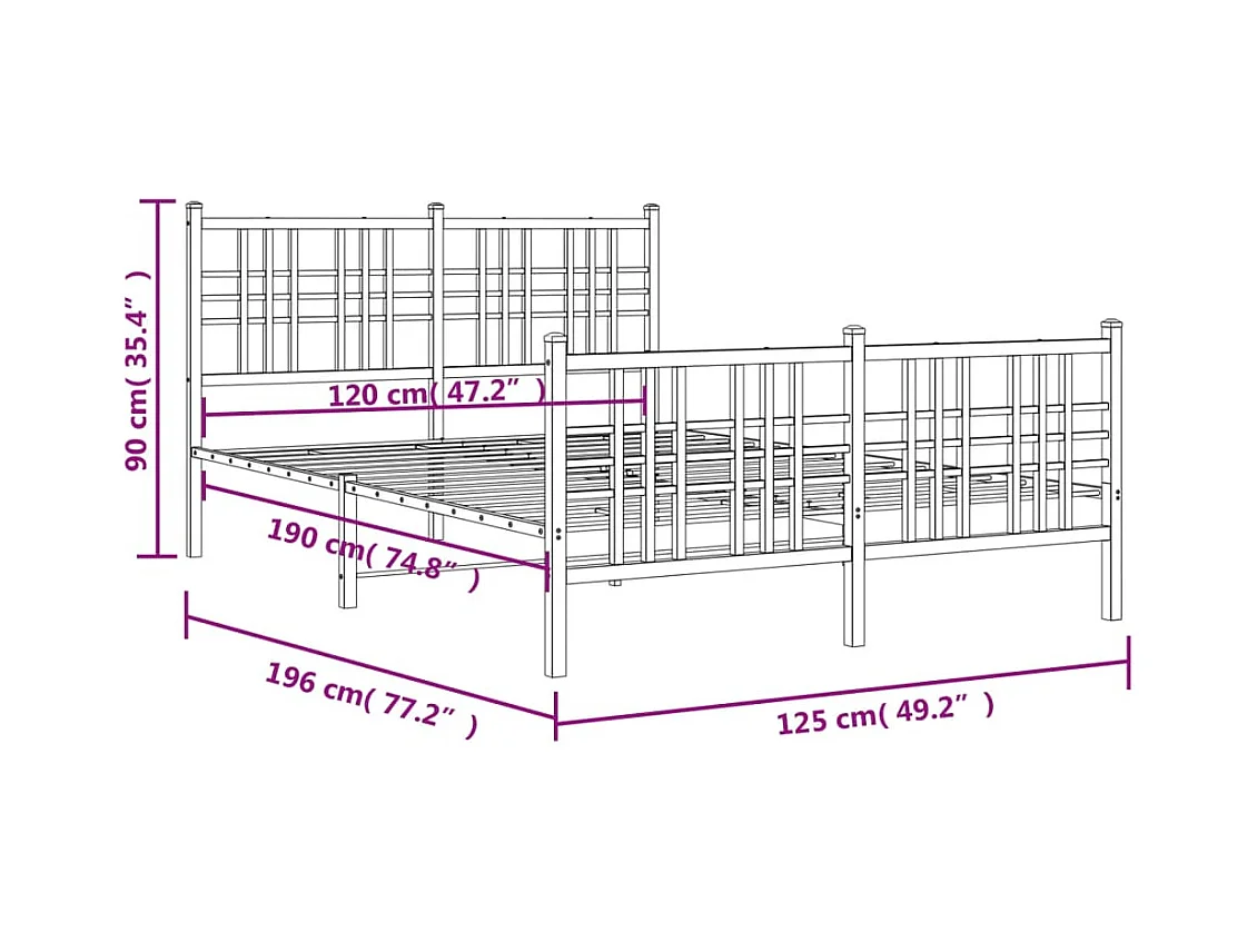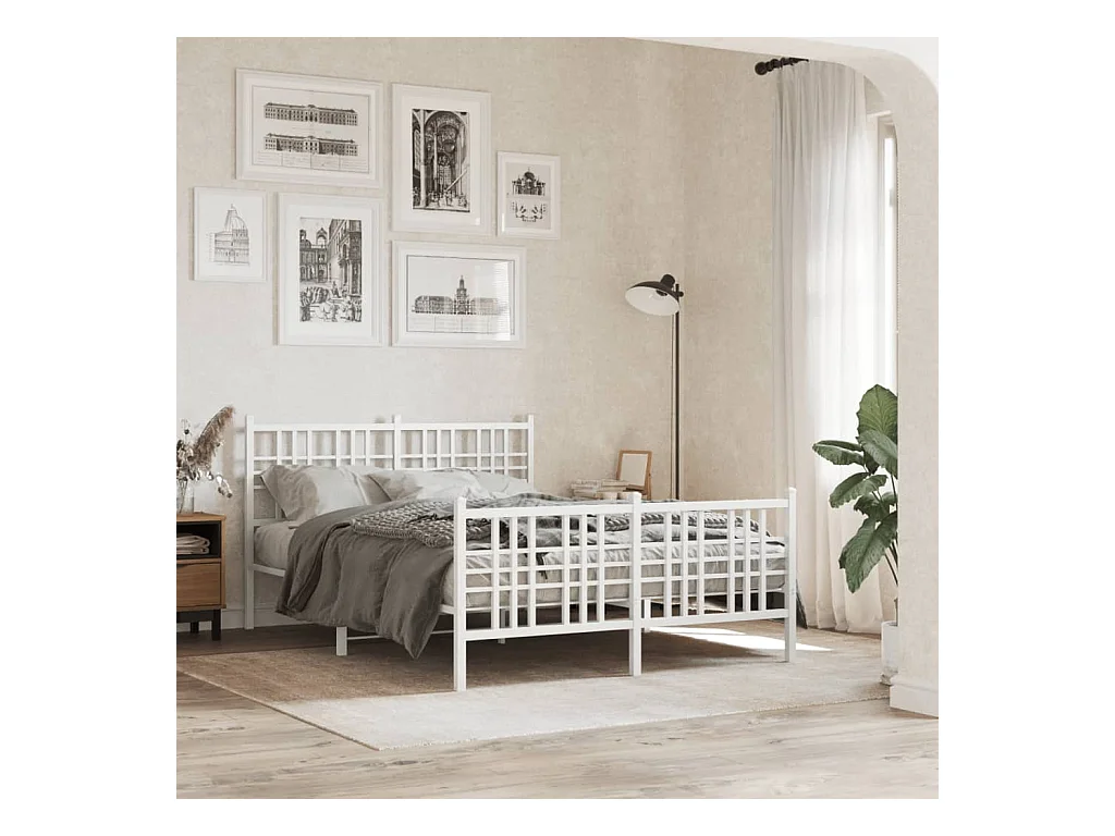 Cadre de lit métal avec tête de lit-pied de lit blanc 120x190