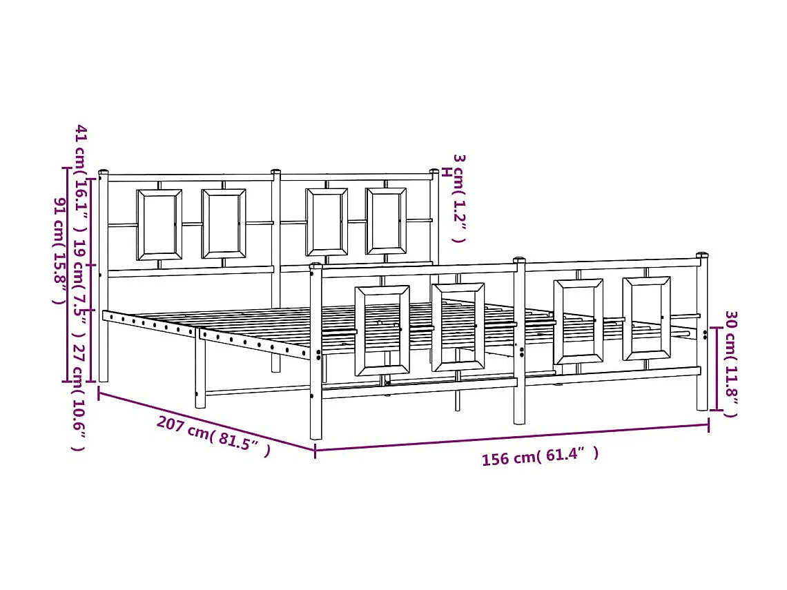 Cadre de lit métal avec tête de lit-pied de lit blanc 150x200