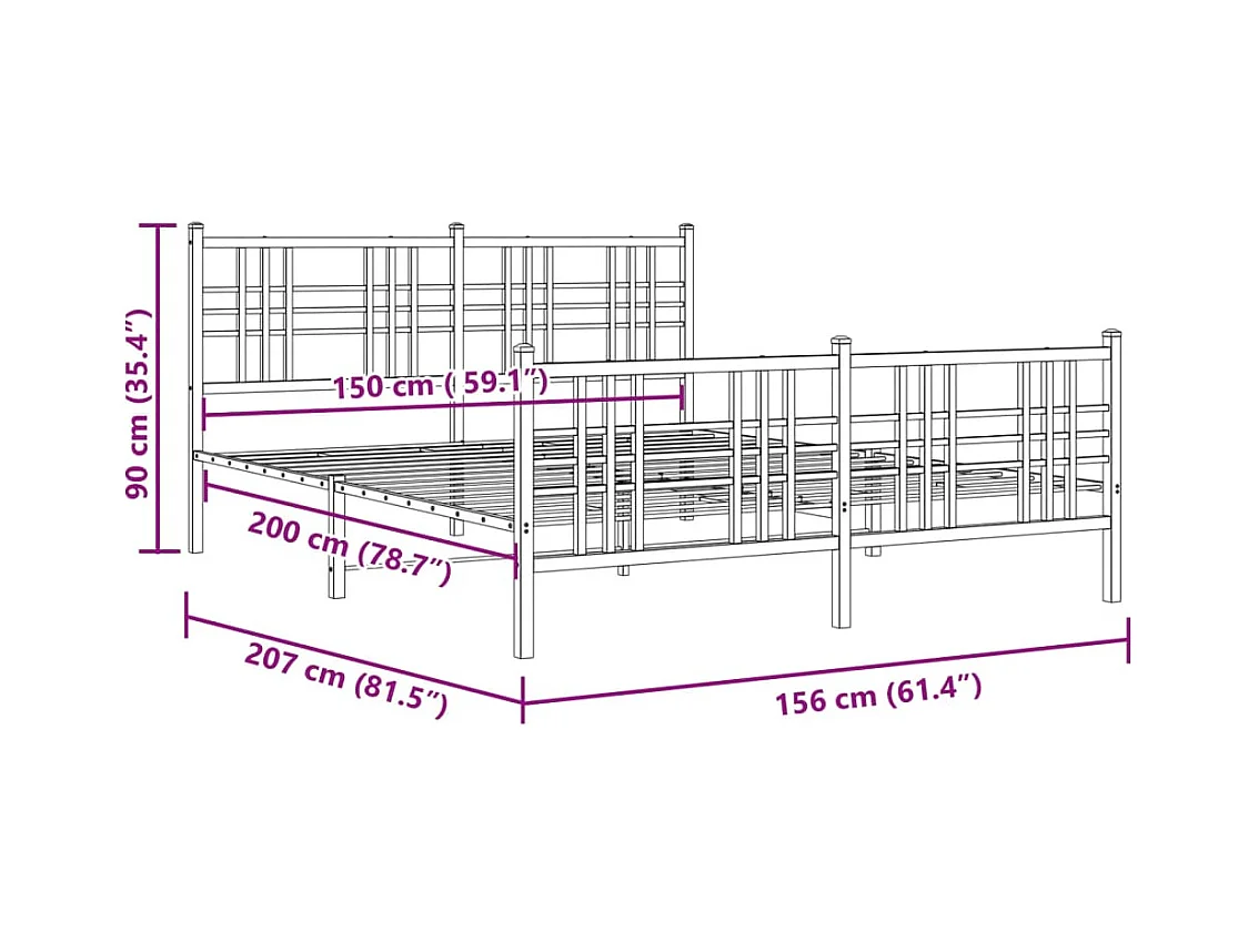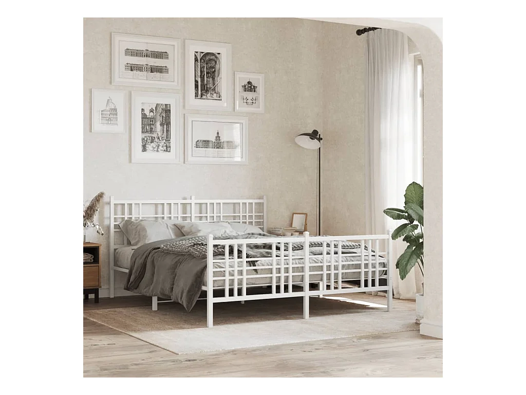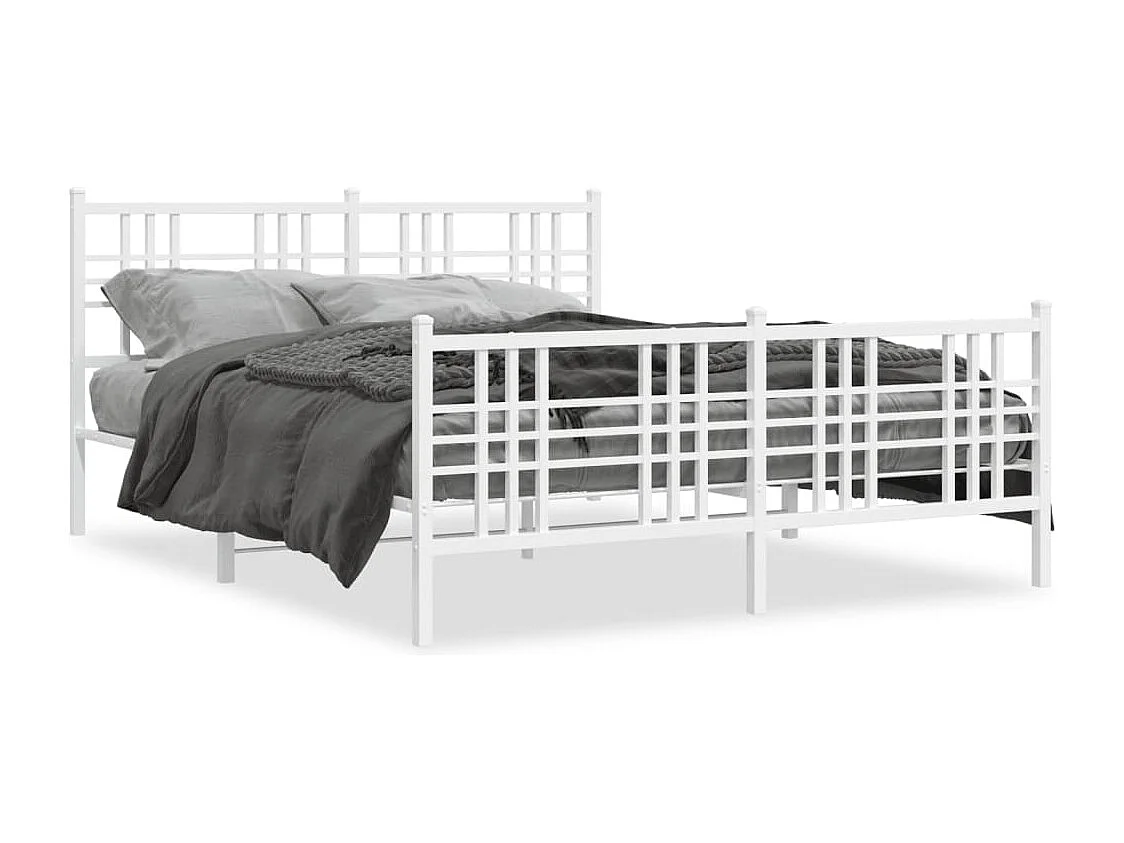 Cadre de lit métal avec tête de lit-pied de lit blanc 150x200