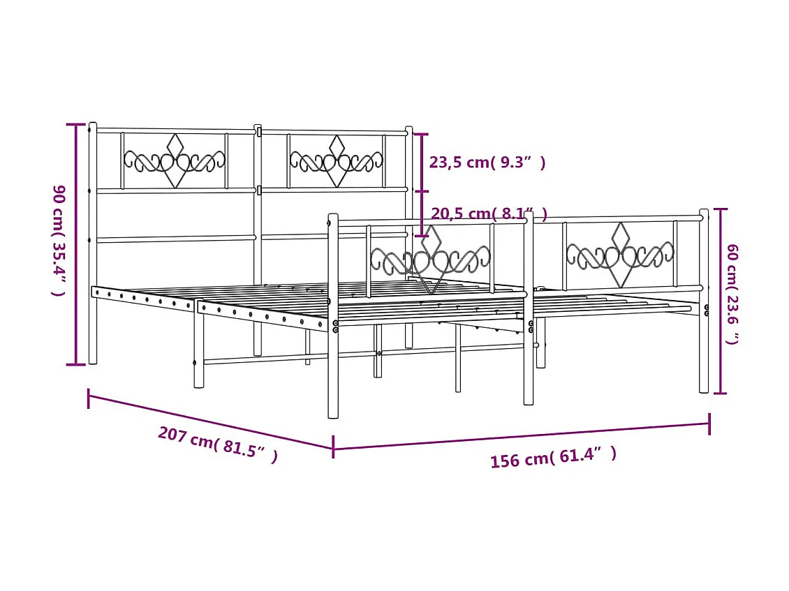 Cadre de lit métal avec tête de lit-pied de lit blanc 150x200