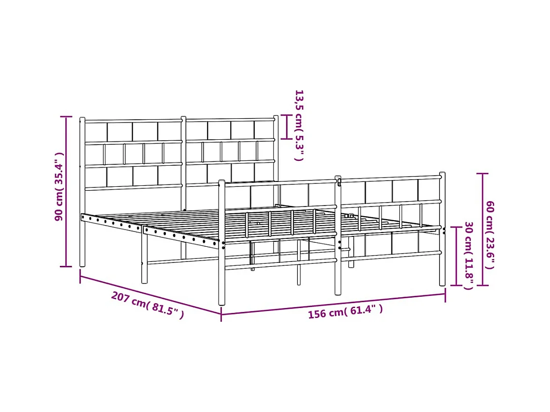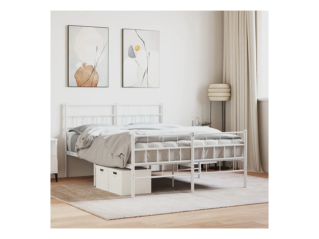 Cadre de lit métal avec tête de lit-pied de lit blanc 150x200