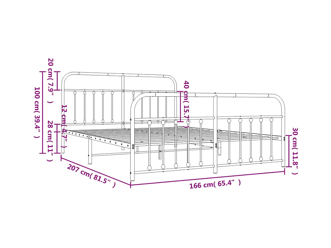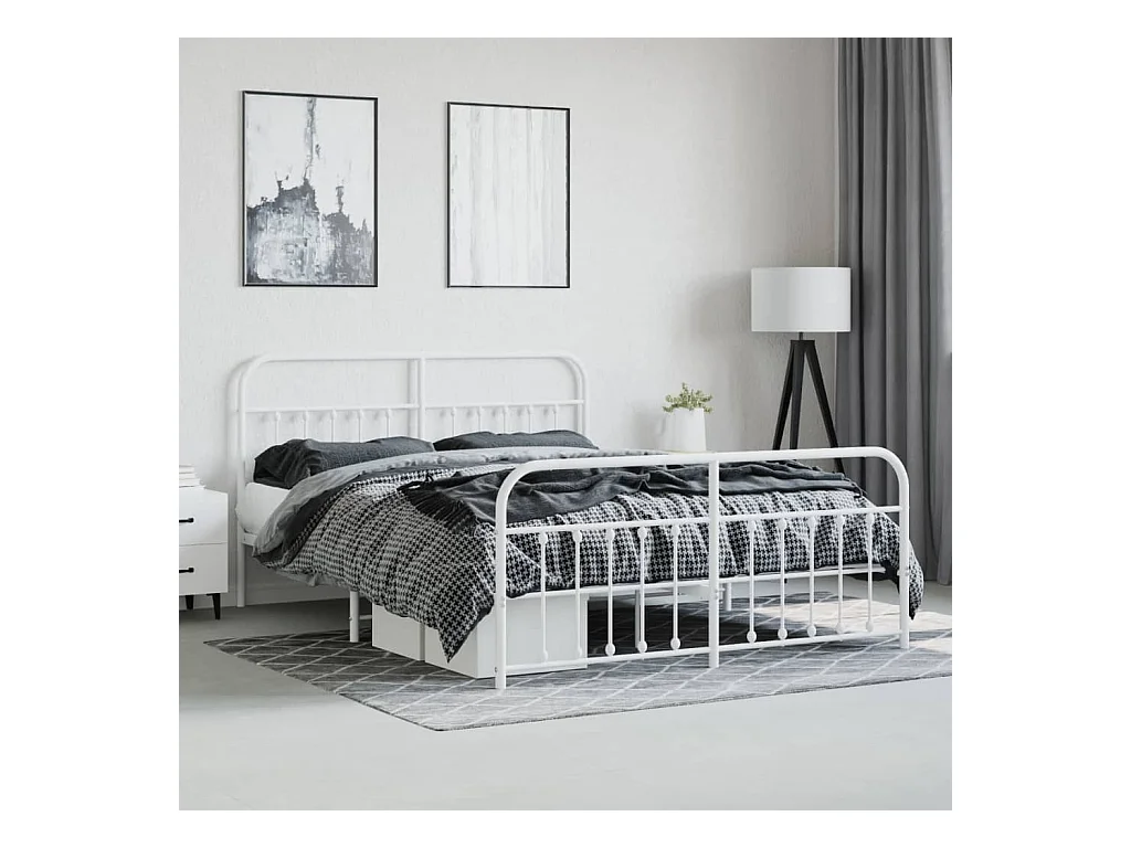 Cadre de lit métal avec tête de lit-pied de lit blanc 160x200