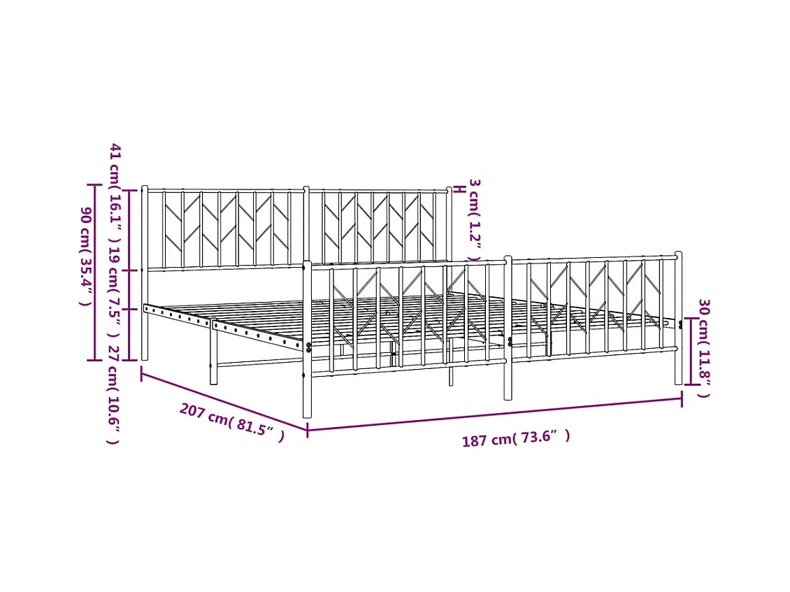 Cadre de lit métal avec tête de lit-pied de lit blanc 180x200
