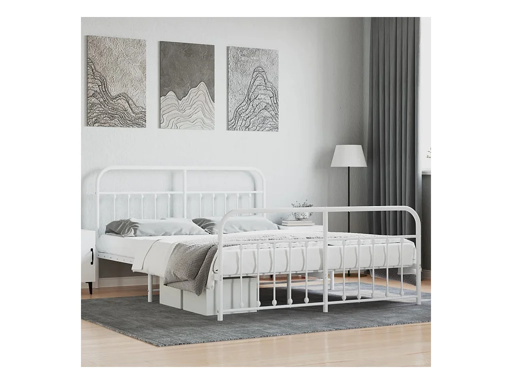Cadre de lit métal avec tête de lit-pied de lit blanc 180x200