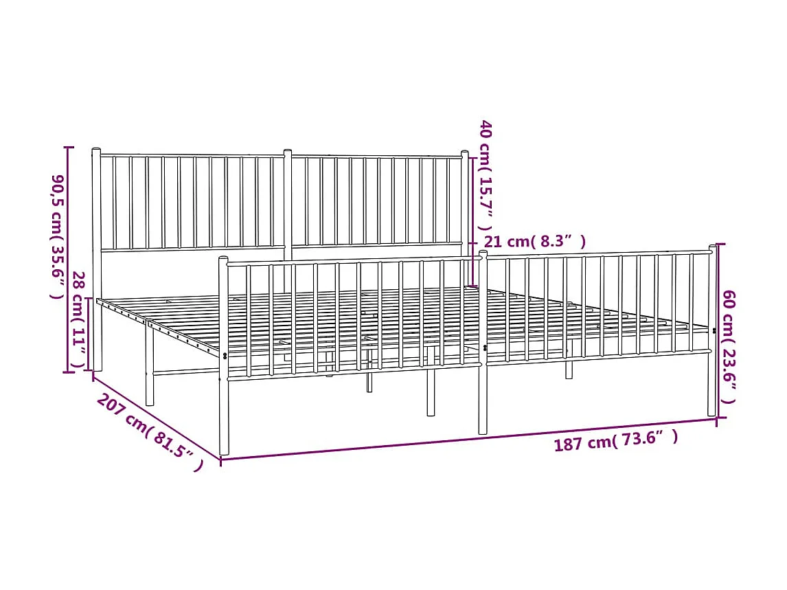Cadre de lit métal avec tête de lit-pied de lit blanc 180x200