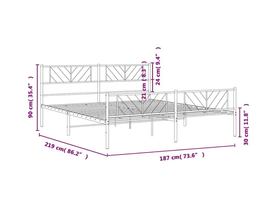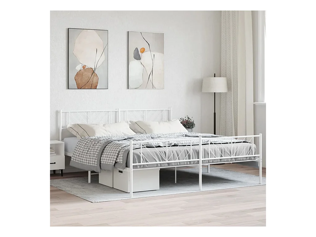 Cadre de lit métal avec tête de lit-pied de lit blanc 183x213