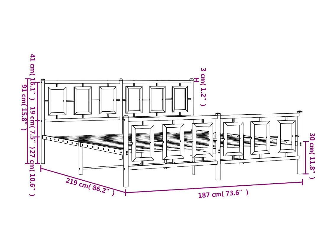 Cadre de lit métal avec tête de lit-pied de lit blanc 183x213