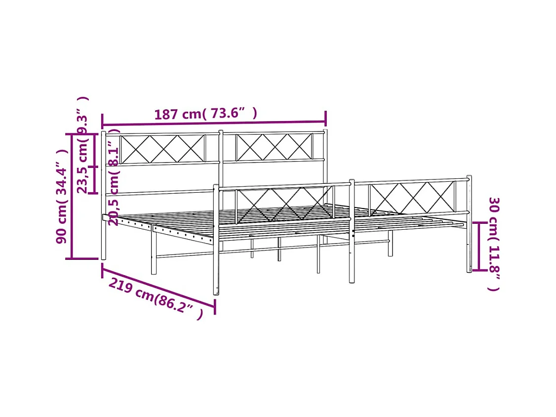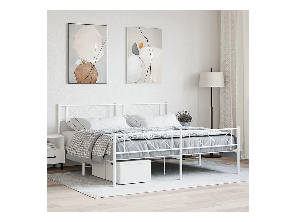 Cadre de lit métal avec tête de lit-pied de lit blanc 183x213