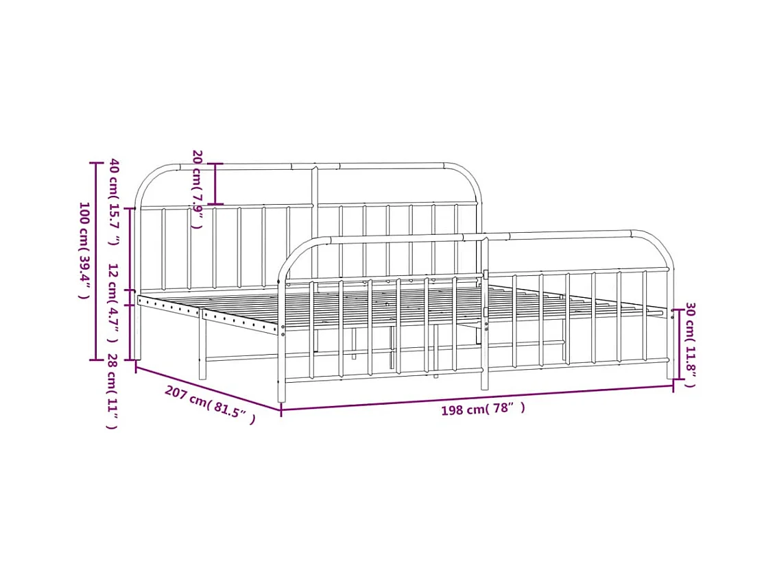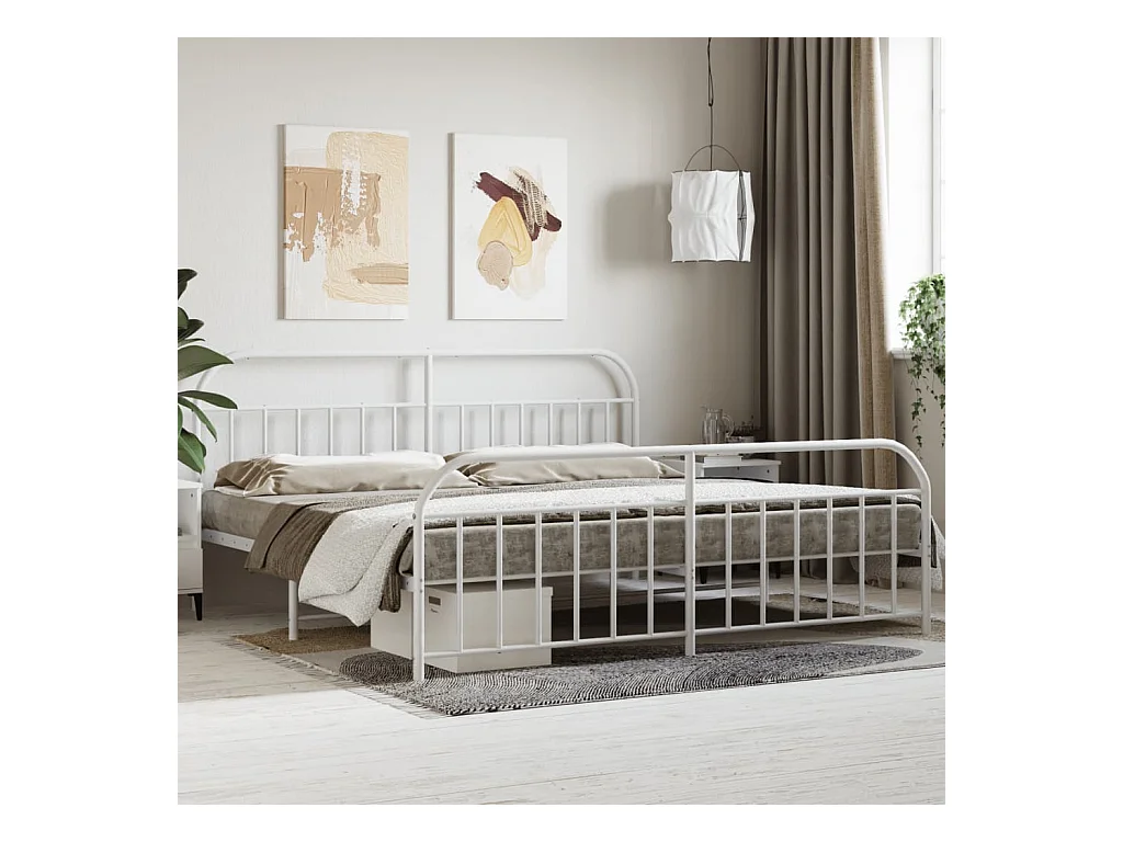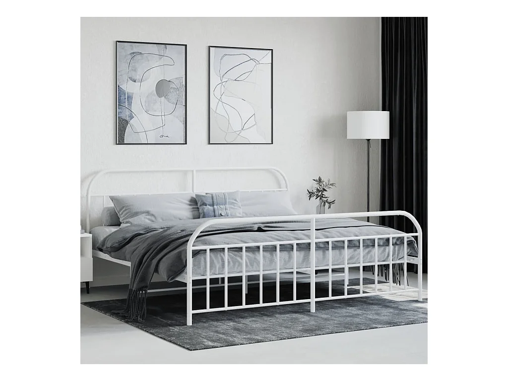 Cadre de lit métal avec tête de lit-pied de lit blanc 193x203