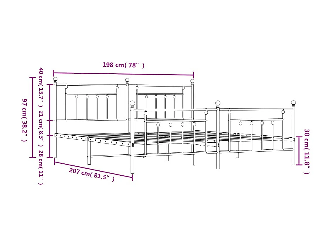 Cadre de lit métal avec tête de lit-pied de lit blanc 193x203