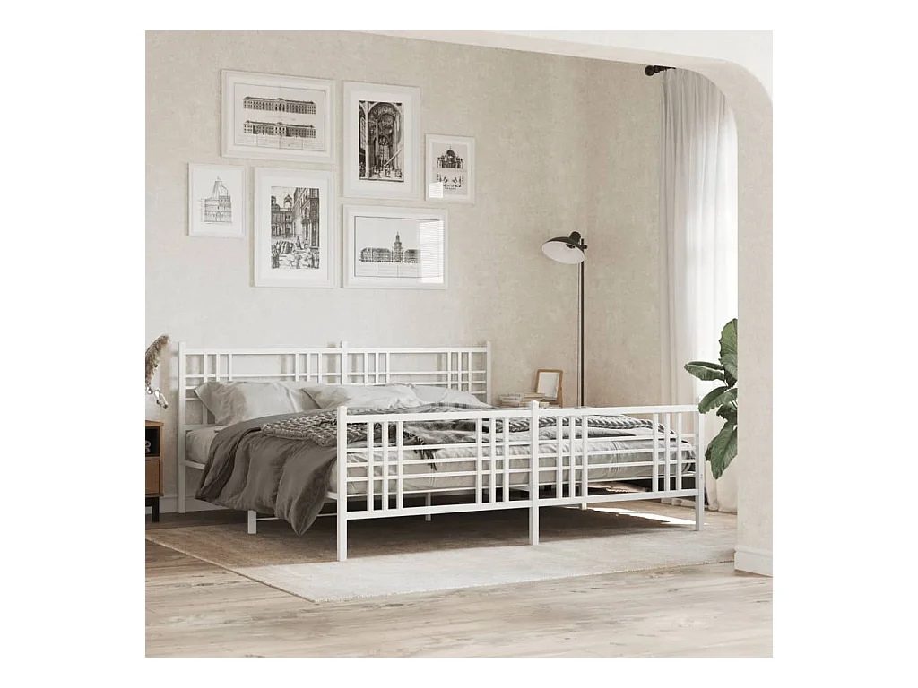 Cadre de lit métal avec tête de lit-pied de lit blanc 200x200