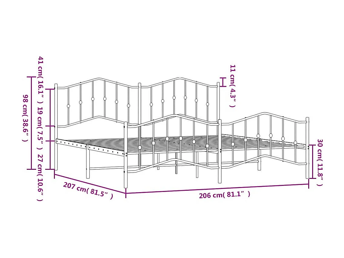 Cadre de lit métal avec tête de lit-pied de lit blanc 200x200