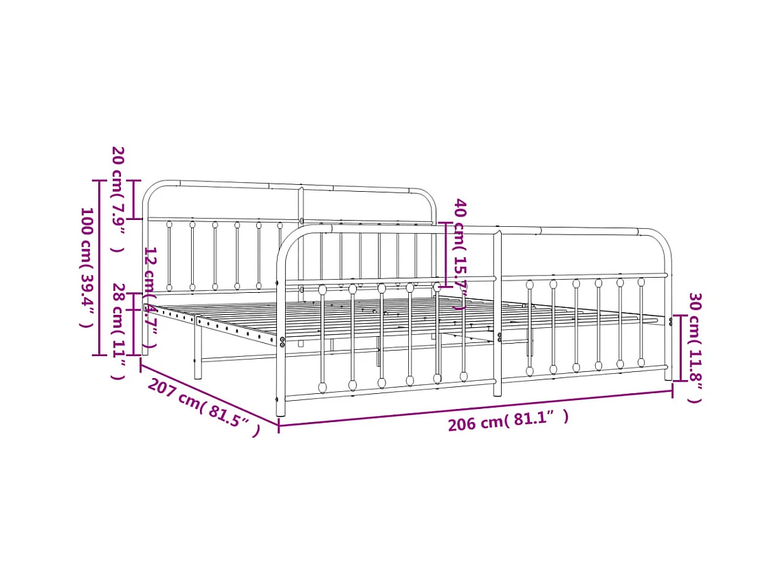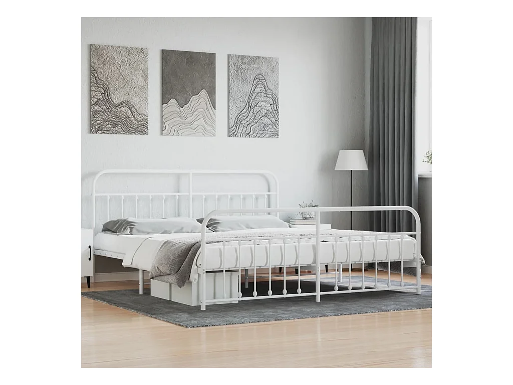 Cadre de lit métal avec tête de lit-pied de lit blanc 200x200