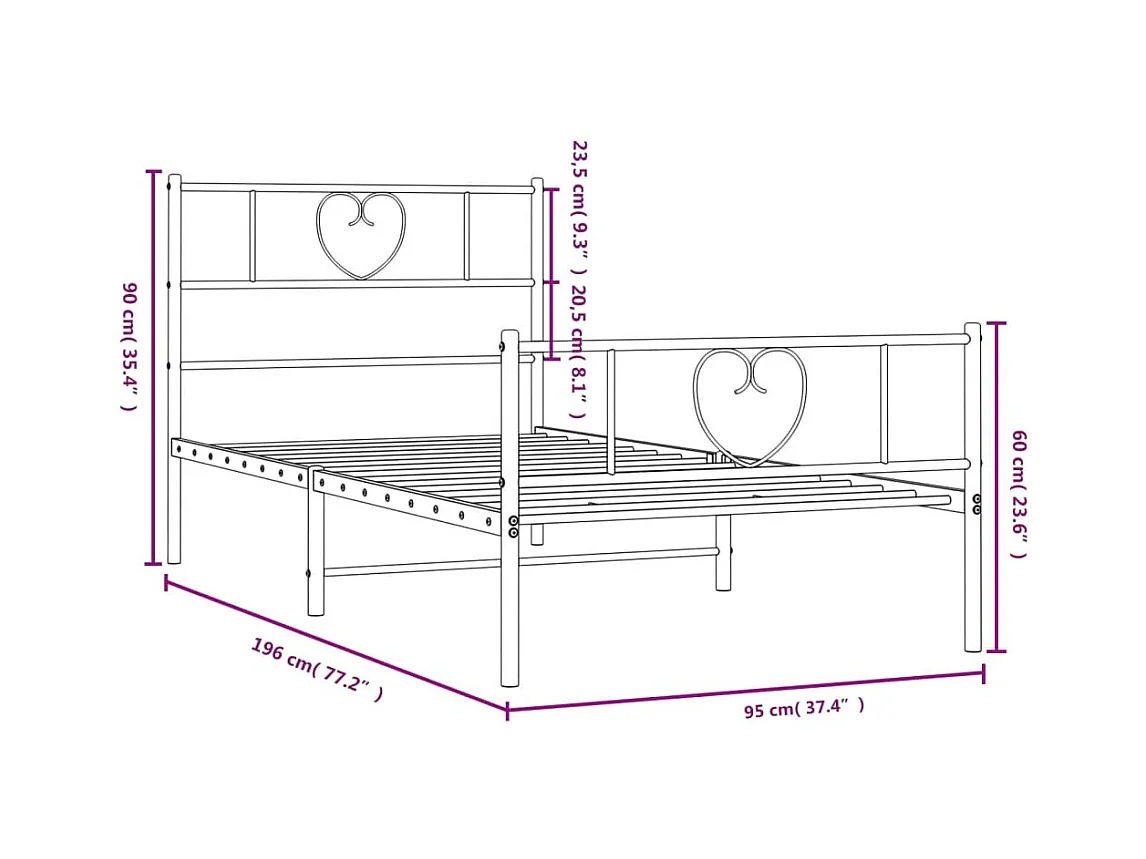 Cadre de lit métal avec tête de lit-pied de lit blanc 100x190