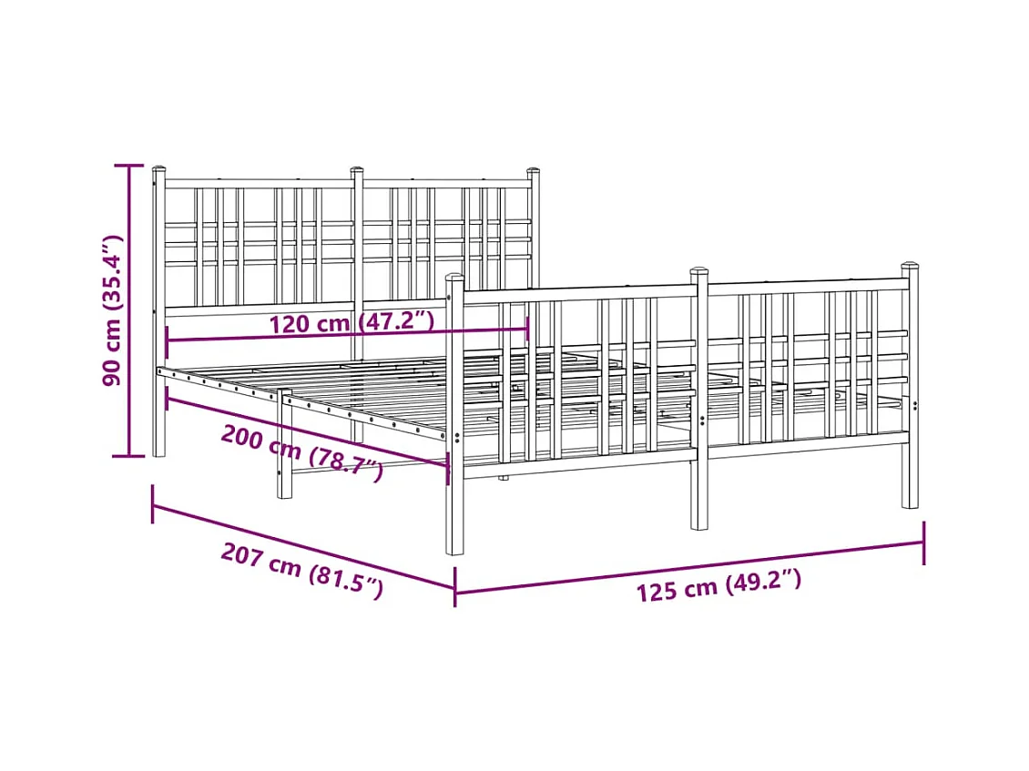 Cadre de lit métal avec tête de lit-pied de lit noir 120x200