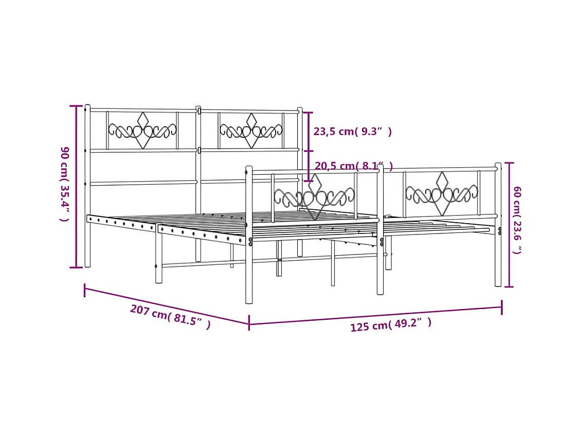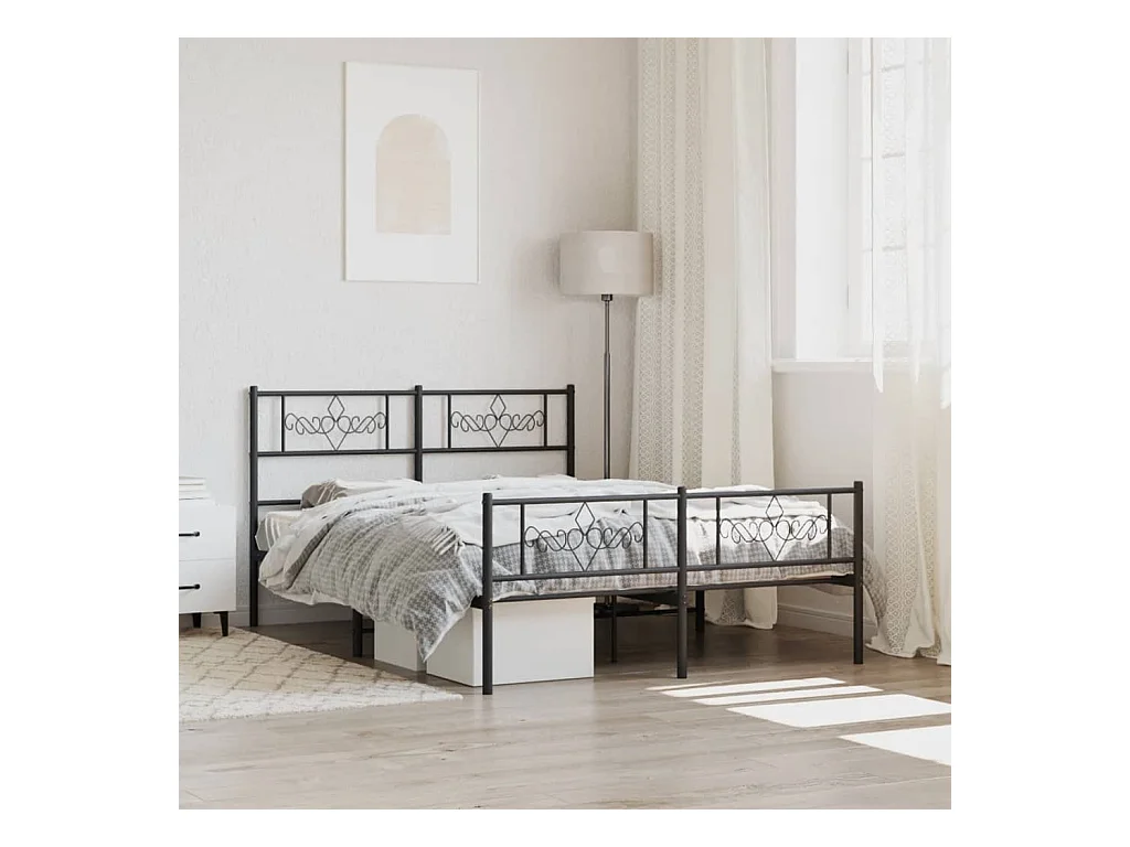 Cadre de lit métal avec tête de lit-pied de lit noir 120x200