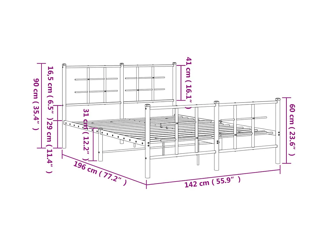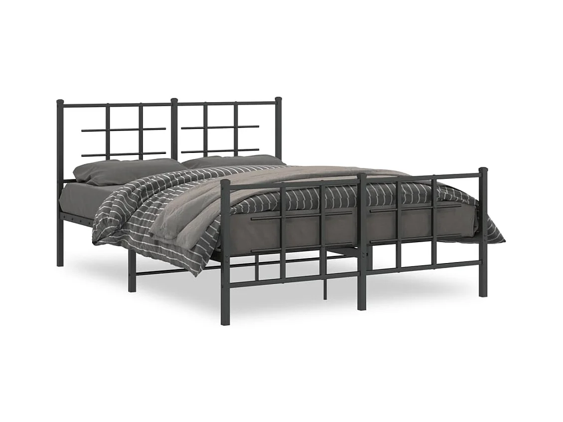Cadre de lit métal avec tête de lit-pied de lit noir 135x190