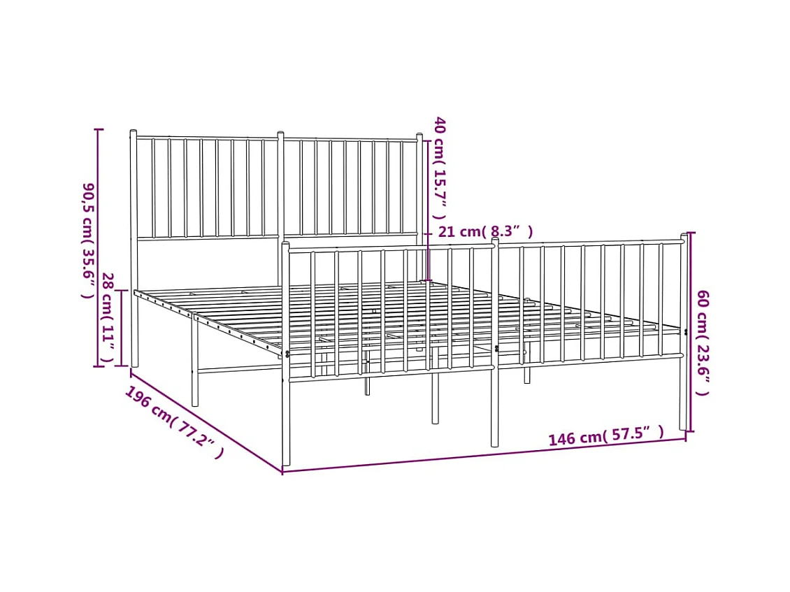 Cadre de lit métal avec tête de lit-pied de lit noir 140x190