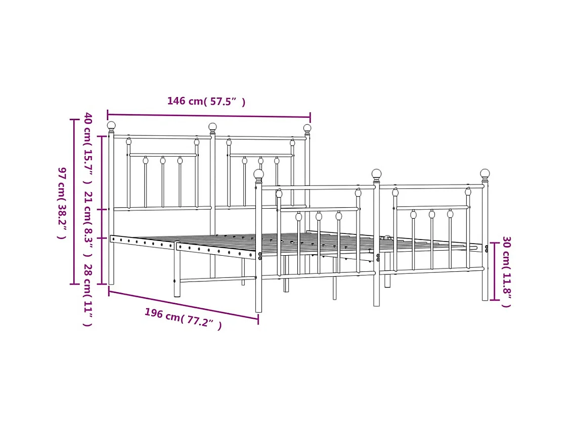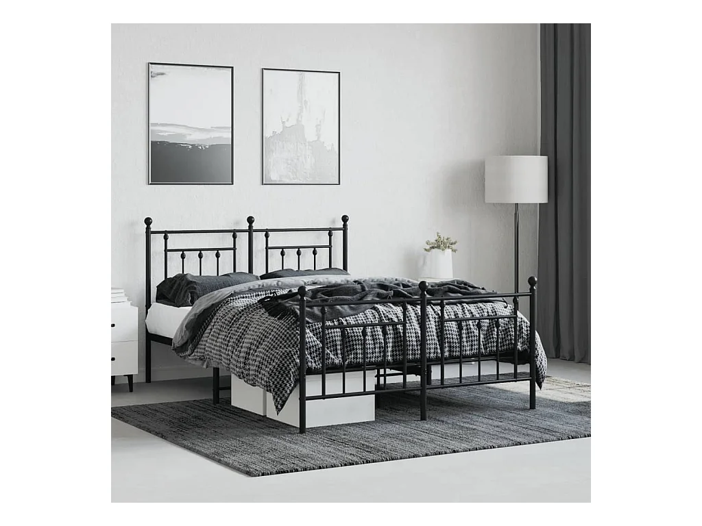 Cadre de lit métal avec tête de lit-pied de lit noir 140x190