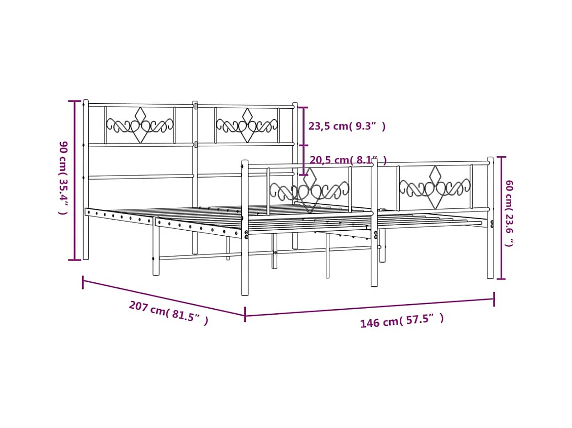 Cadre de lit métal avec tête de lit-pied de lit noir 140x200