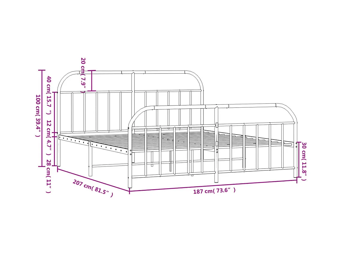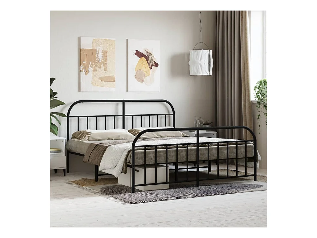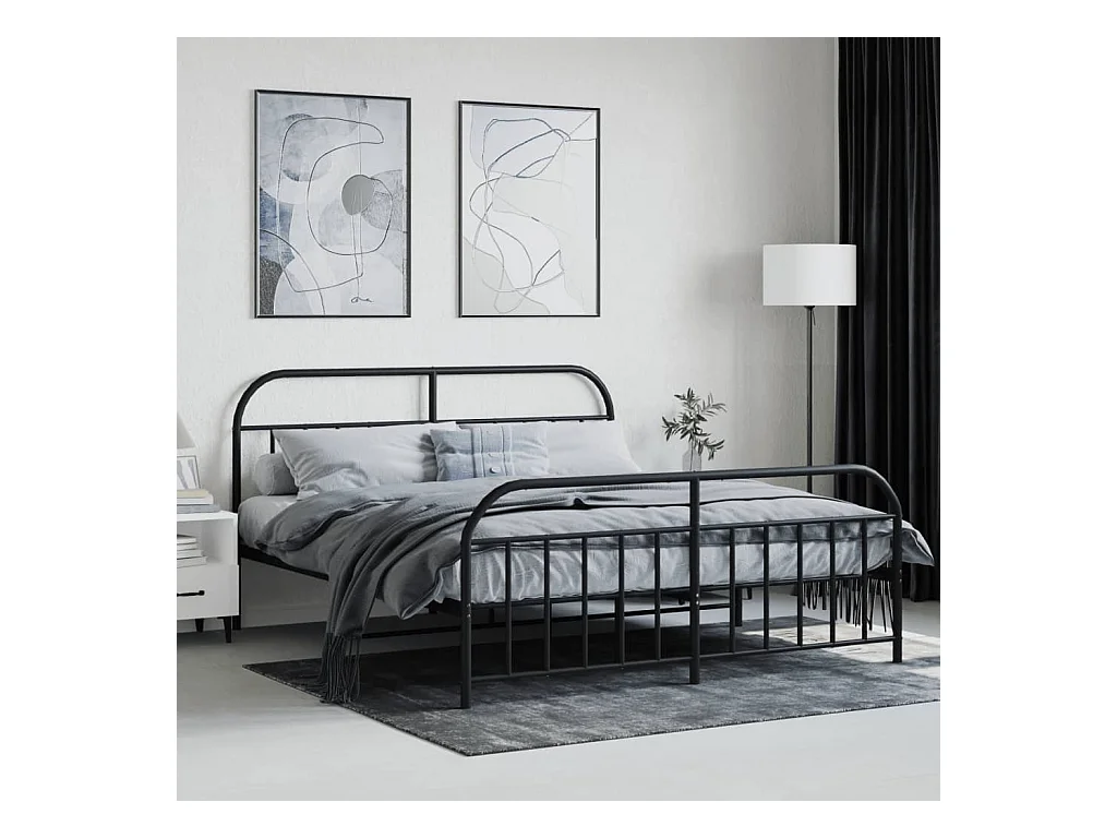 Cadre de lit métal avec tête de lit-pied de lit noir 180x200
