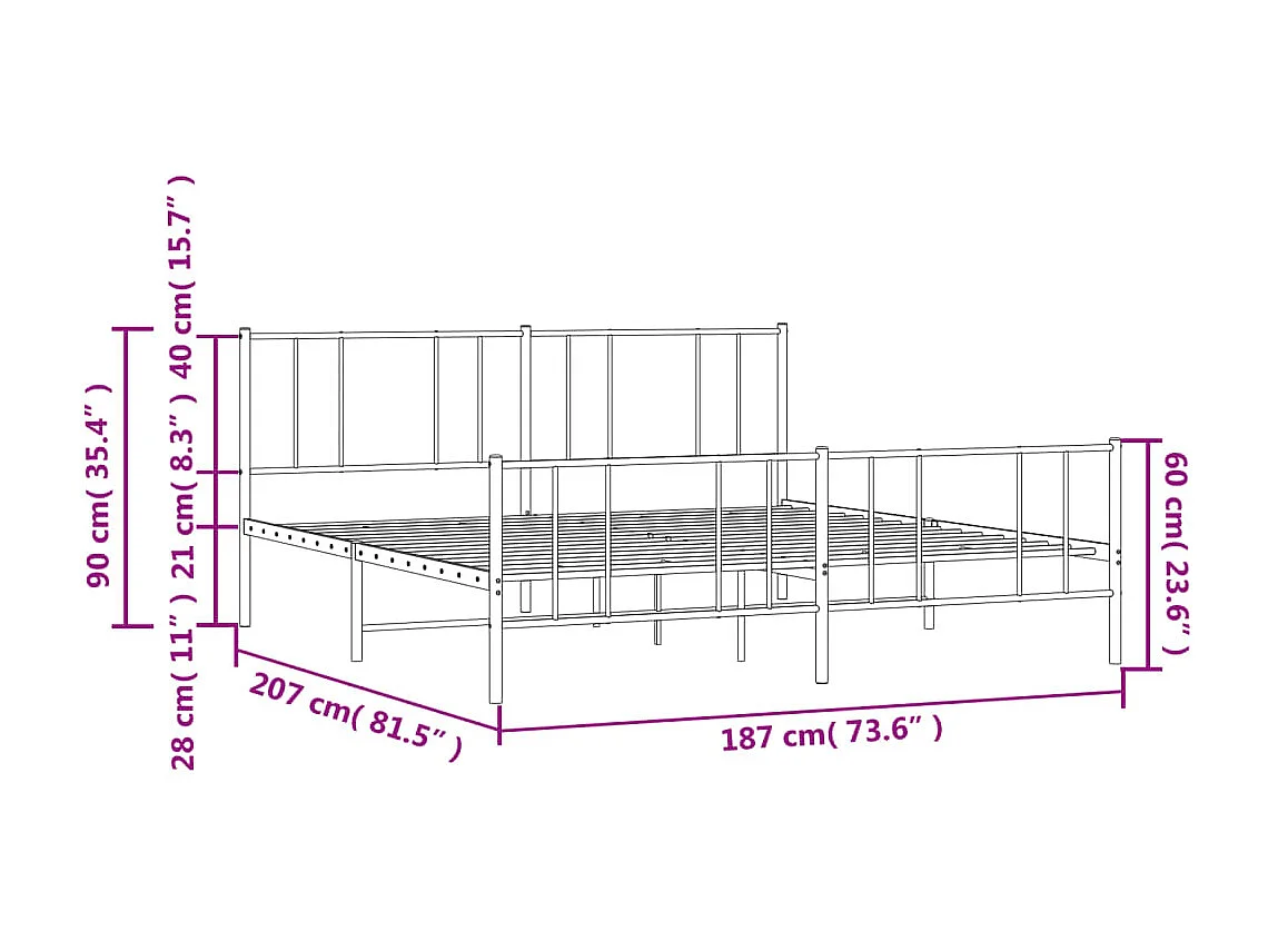 Cadre de lit métal avec tête de lit-pied de lit noir 180x200