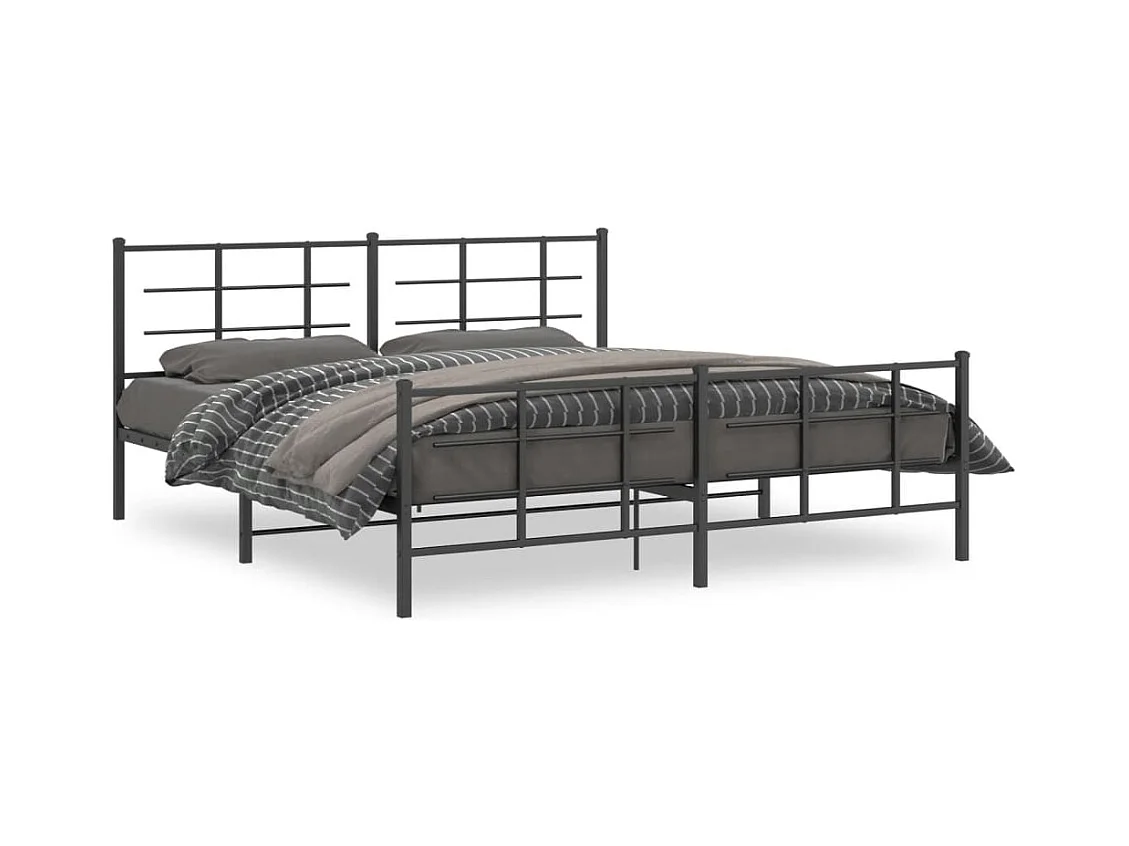 Cadre de lit métal avec tête de lit-pied de lit noir 183x213