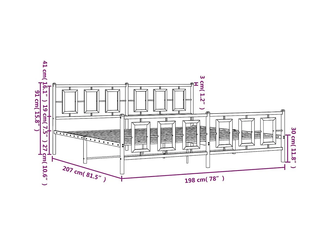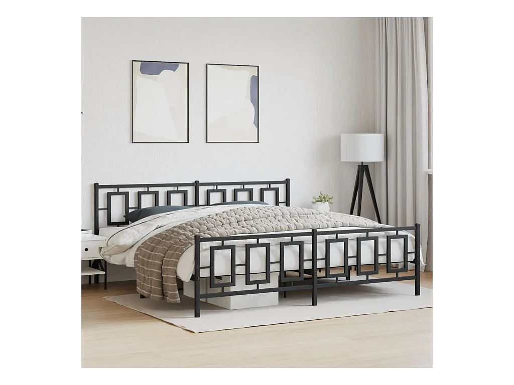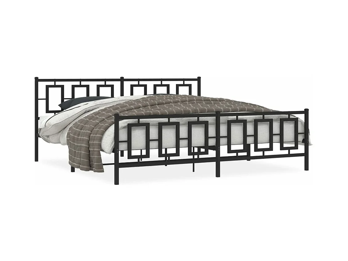 Cadre de lit métal avec tête de lit-pied de lit noir 193x203