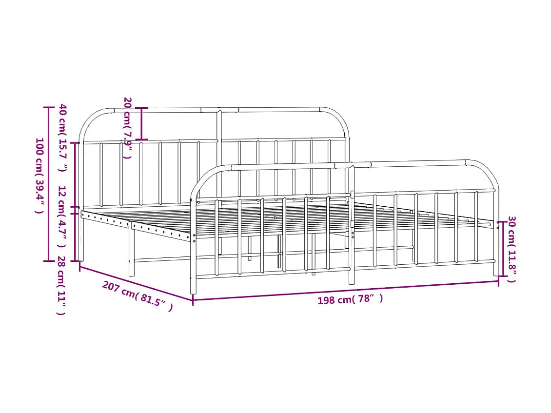 Cadre de lit métal avec tête de lit-pied de lit noir 193x203