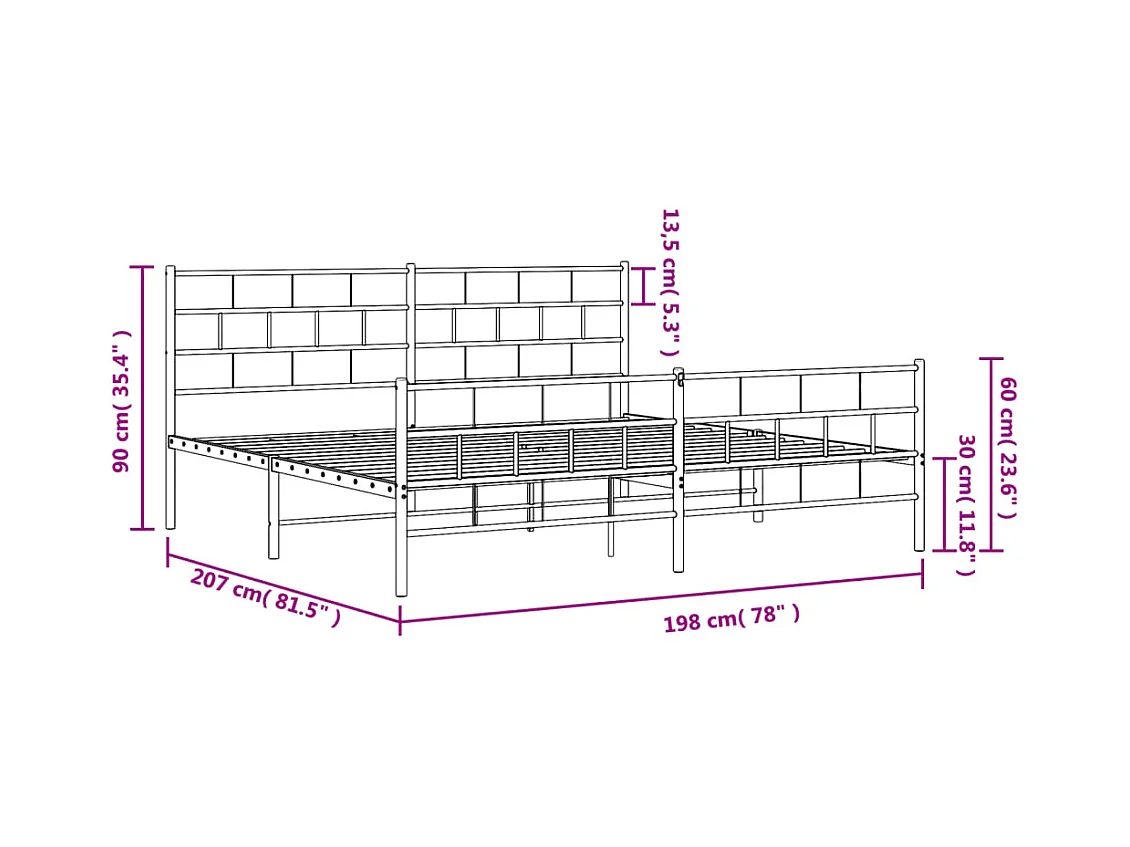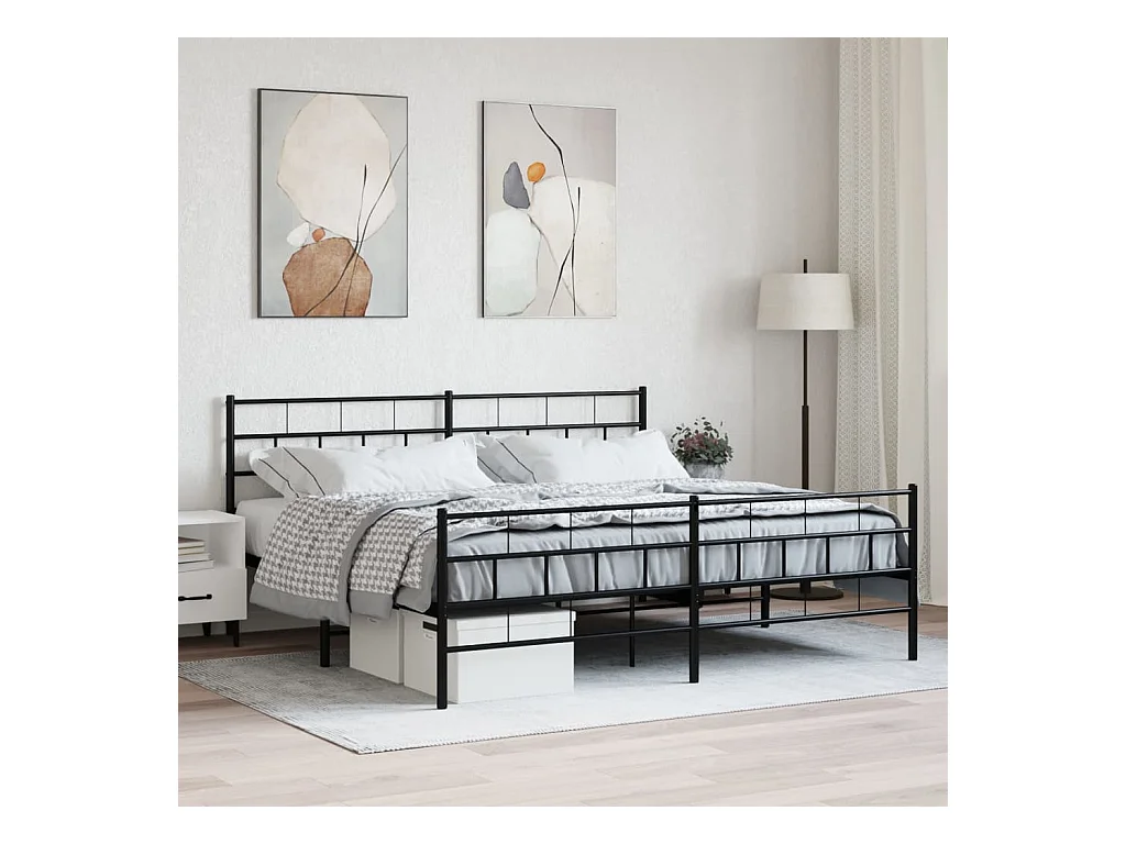 Cadre de lit métal avec tête de lit-pied de lit noir 193x203