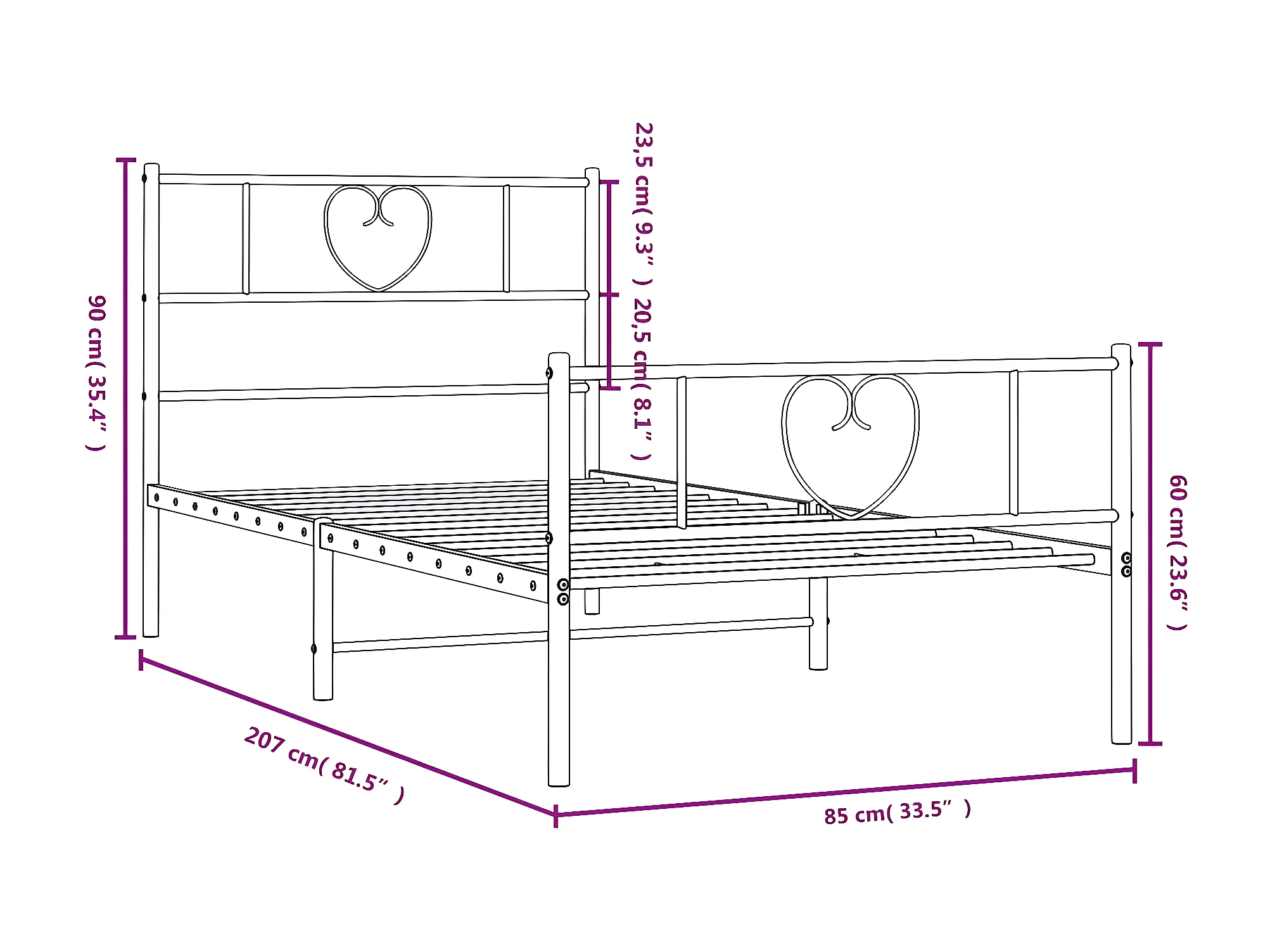 Lit simple métal + tête de lit/pied de lit noir 80x200 cm FR61478
