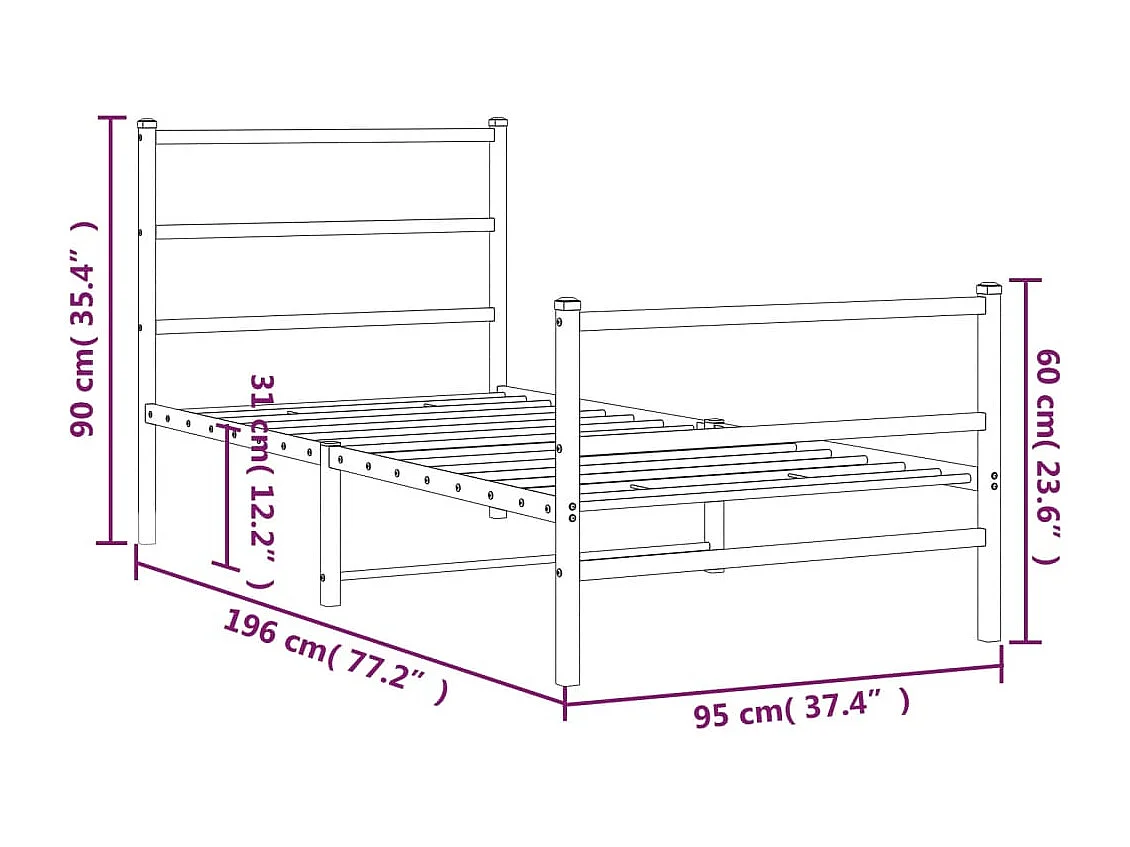 Cadre de lit métal avec tête de lit-pied de lit noir 90x190