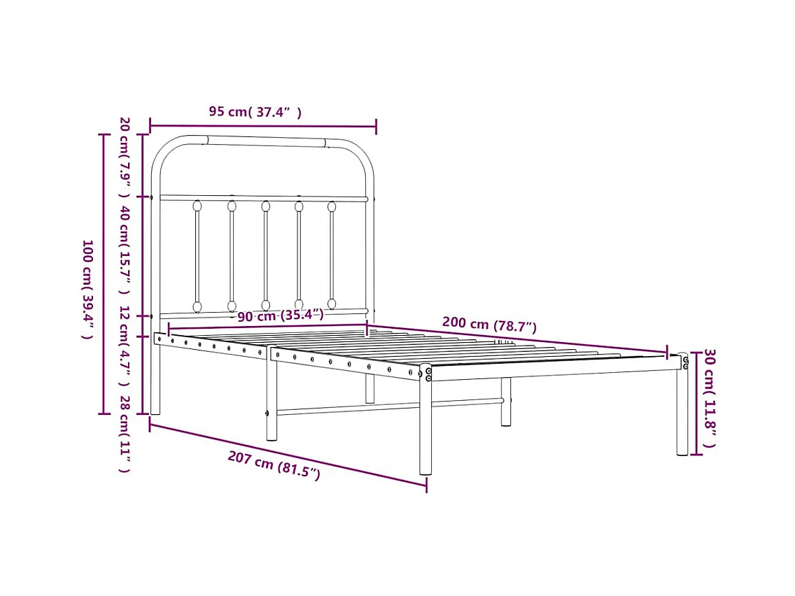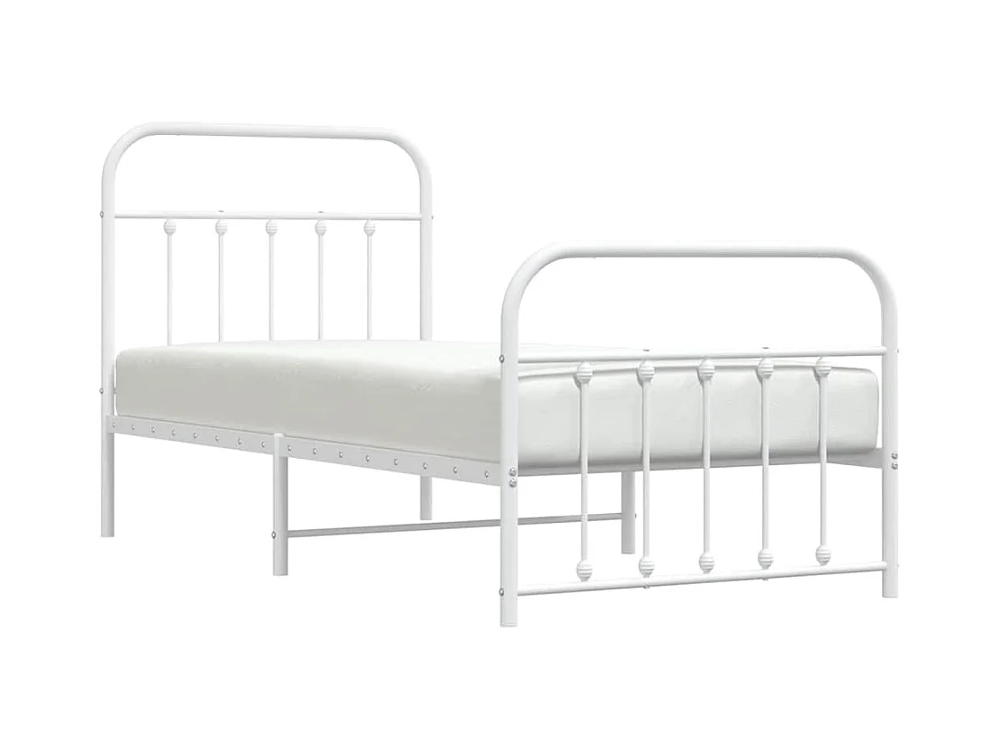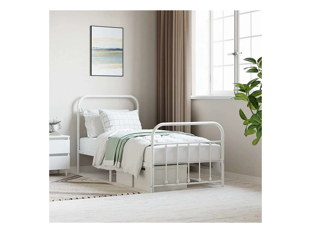 Lit simple métal + tête de lit/pied de lit blanc 90x200 cm FR41444