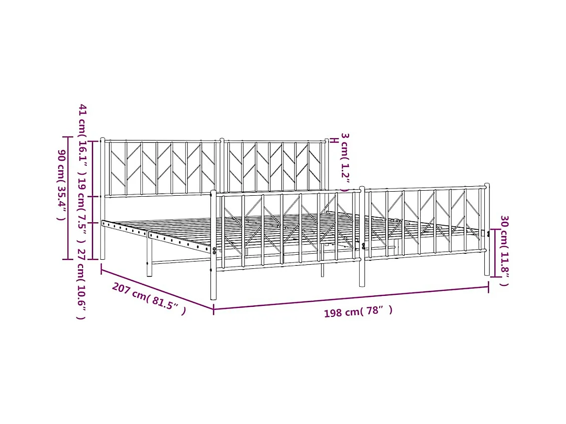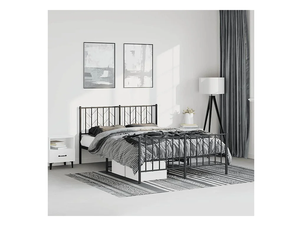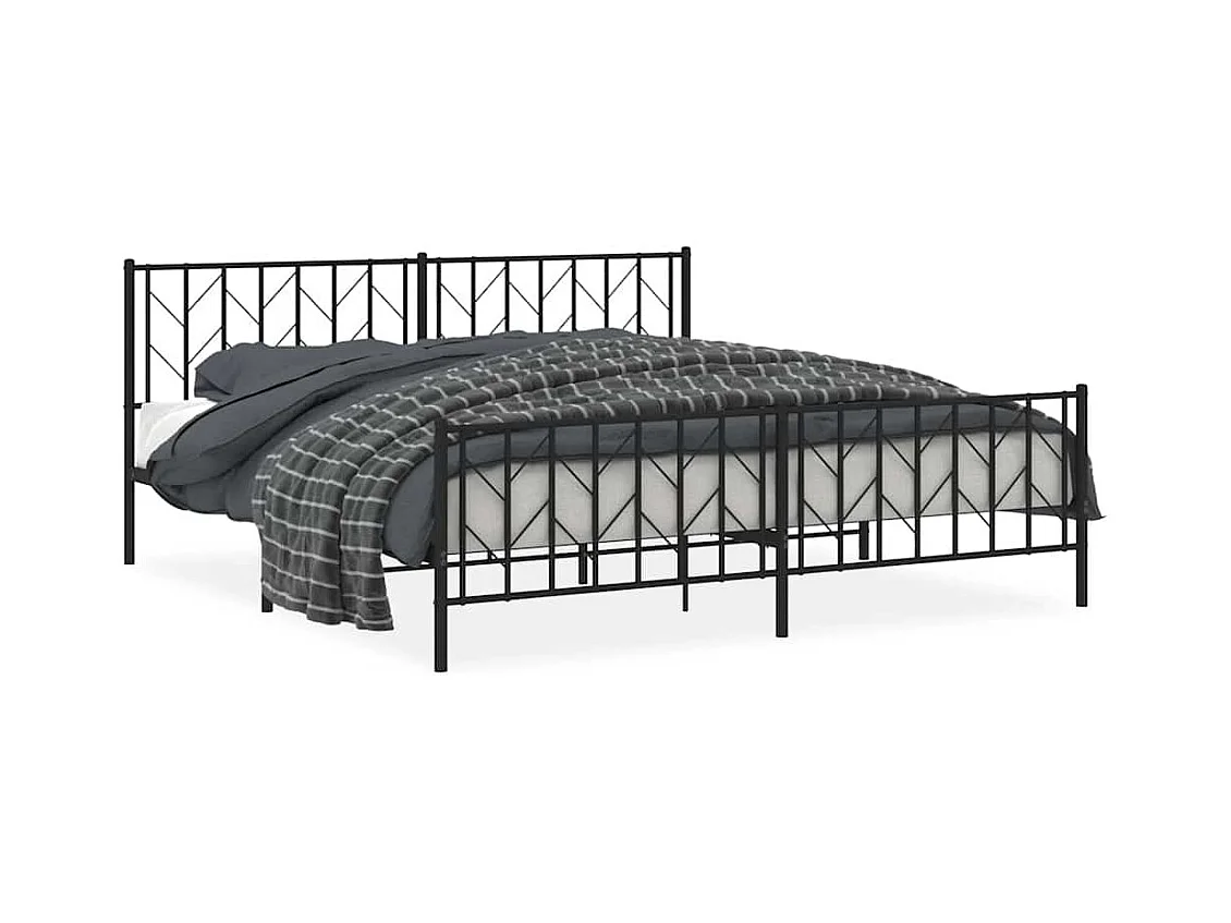 Cadre de lit métal sans matelas avec tête de lit noir 193x203cm
