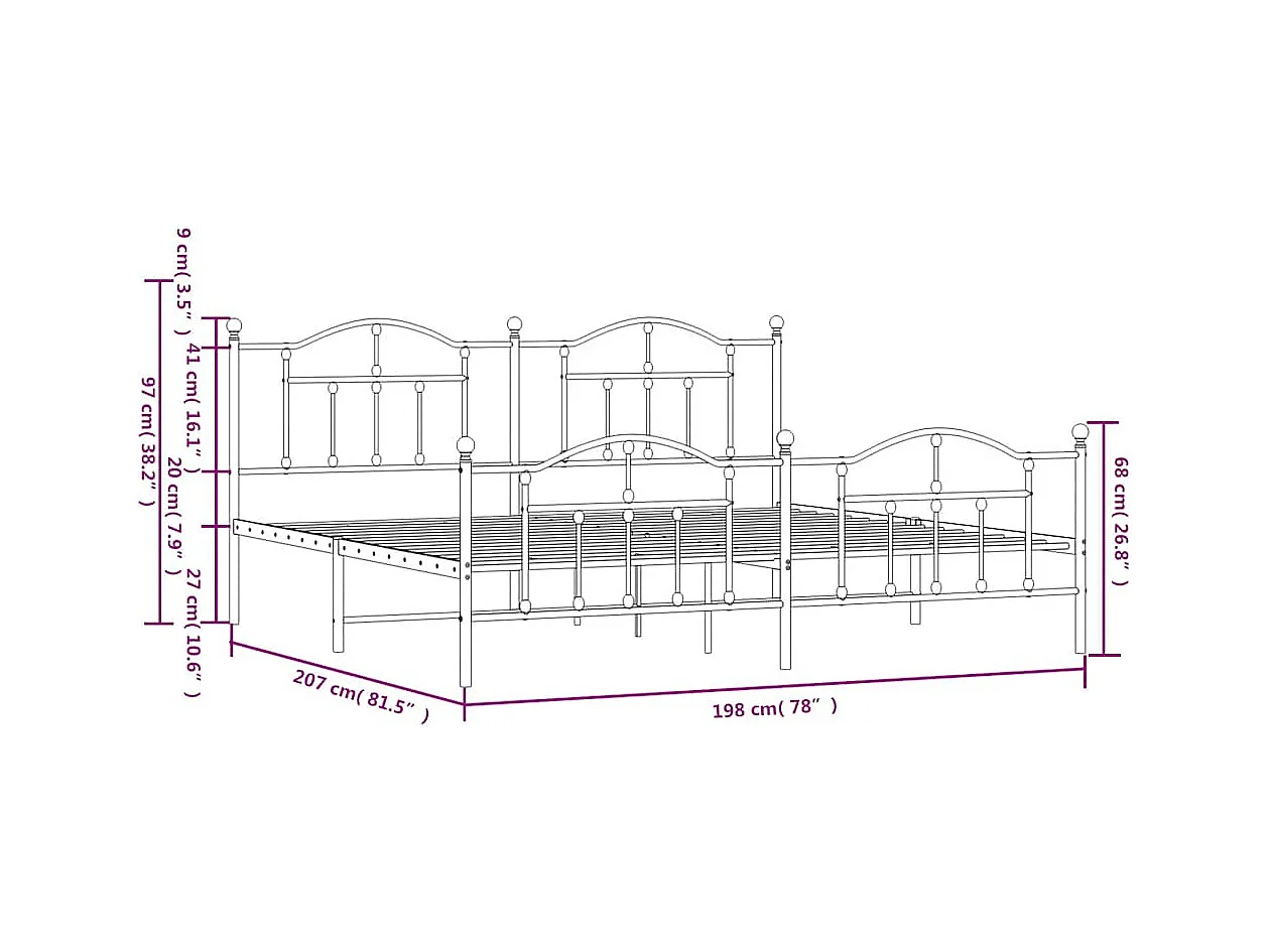 Cadre de lit métal sans matelas avec pied de lit noir 193x203cm