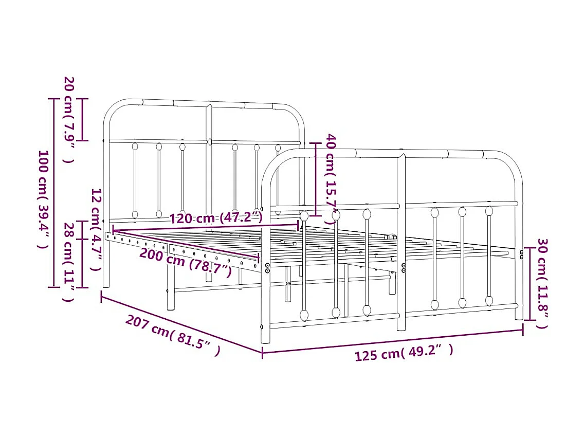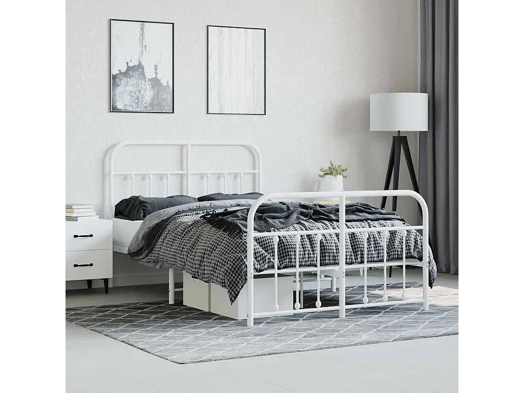 Cadre de lit métal sans matelas et pied de lit blanc 120x200 cm